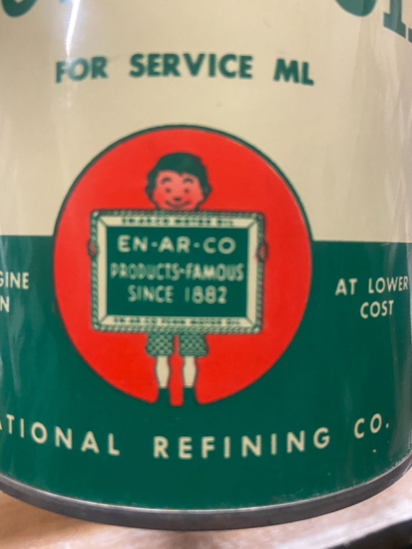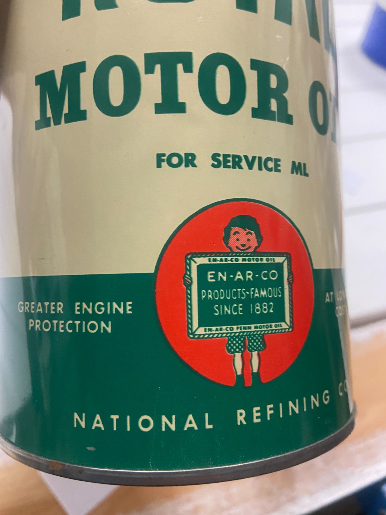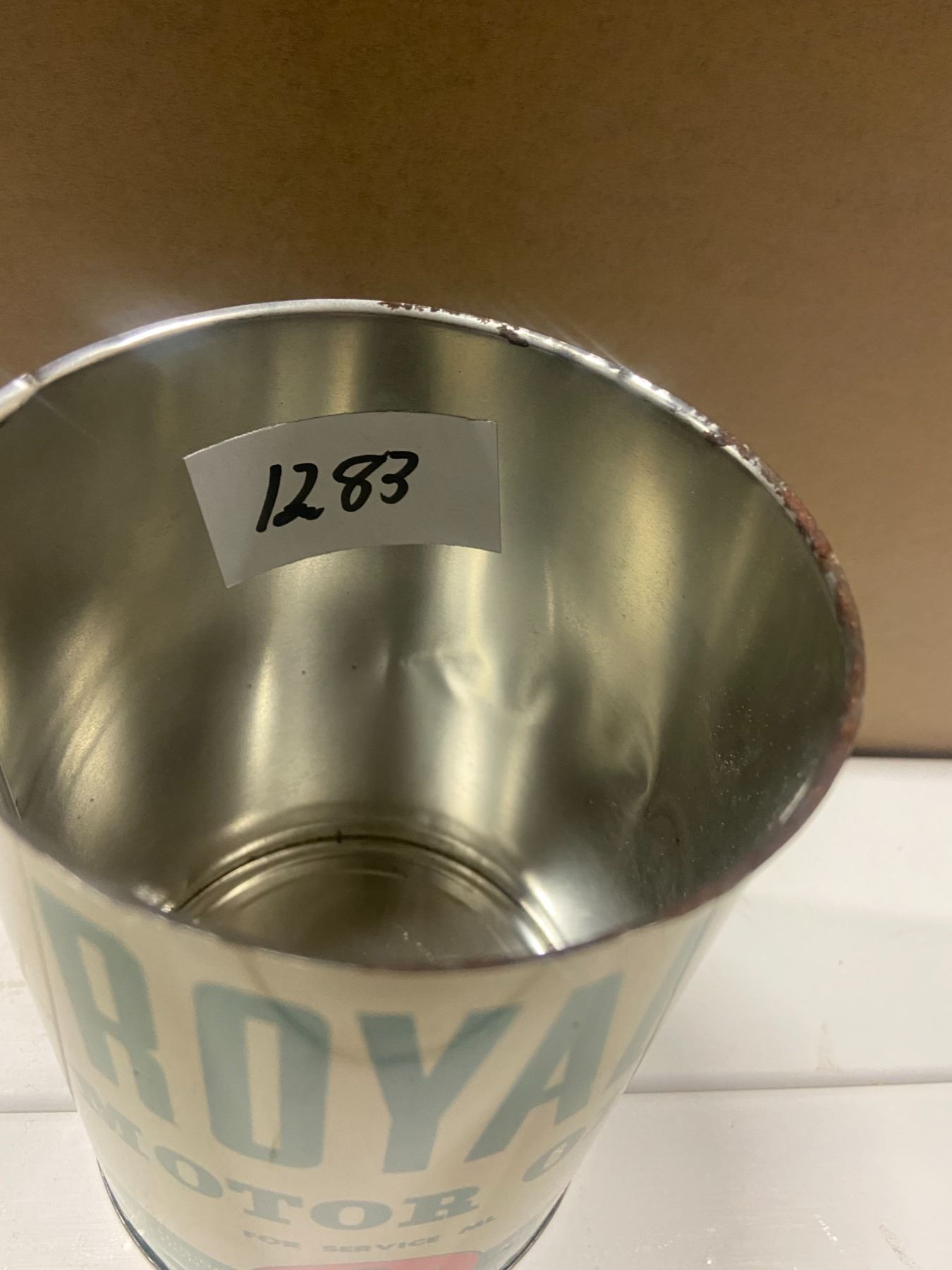 1 quart Royal motor oil Slate Boy tin - "Enarco" top has been cut out - Rare