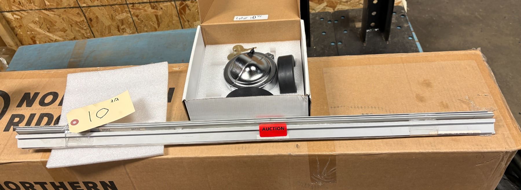 10: 5 lengths of aluminum door brush holder and Kenworth fuel cap lock
