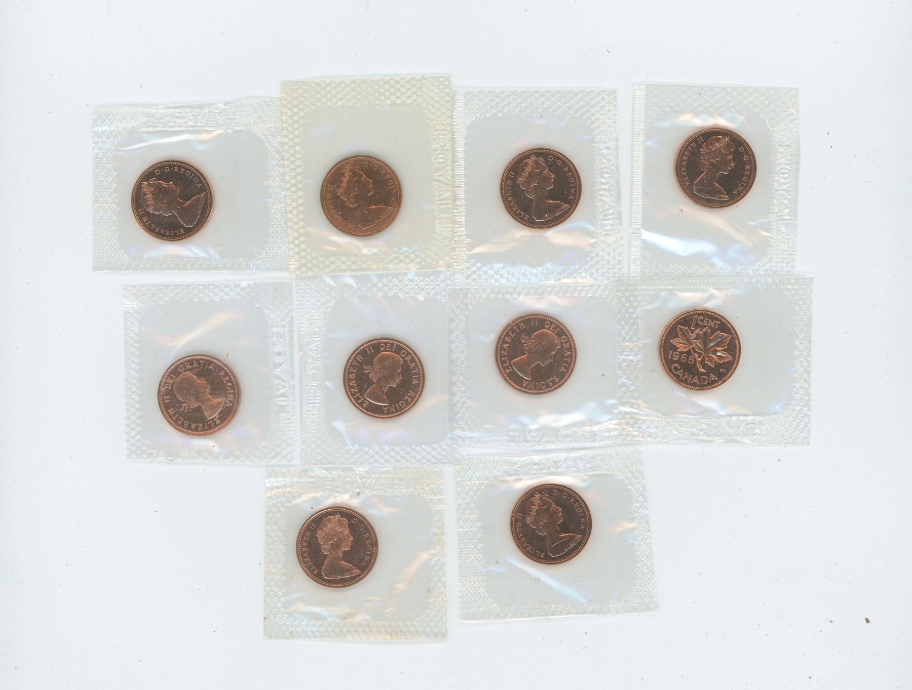 10 CANADIAN 1 CENT PROOF LIKE 1963X3,1965X6,1966