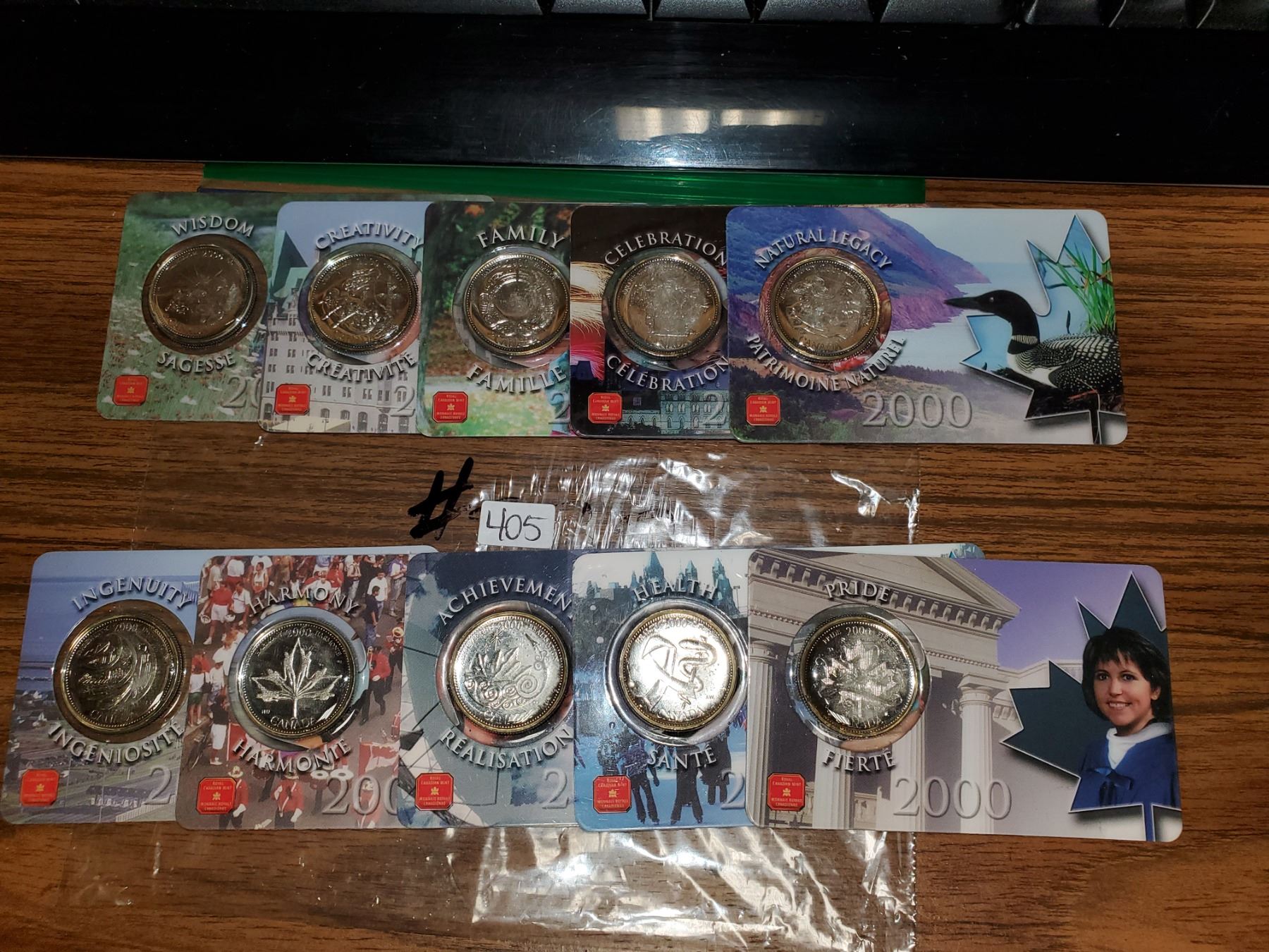 10-Canadian 2000 quarters in plastic credit card holders,10-Canadian quarters