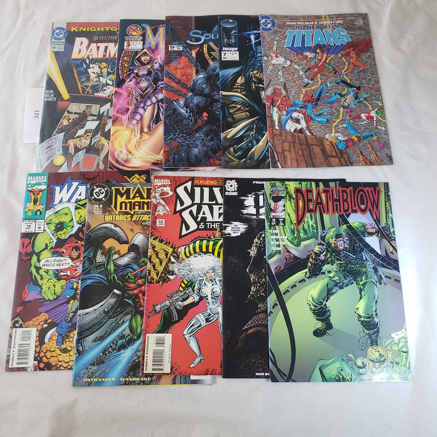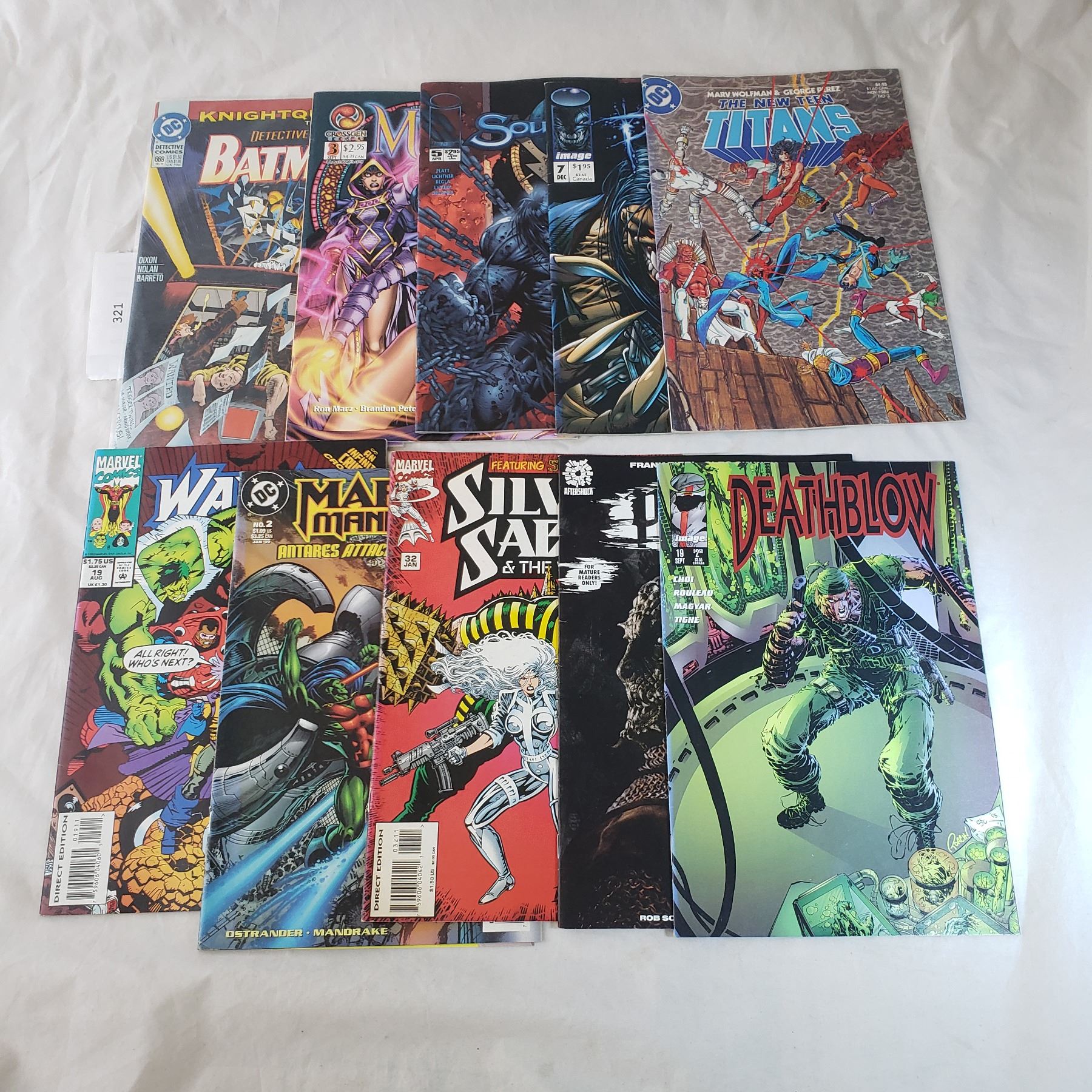 10 Comics MARVEL D.C. Batman, Silver Sable, Deathblow, The new Teen Titans