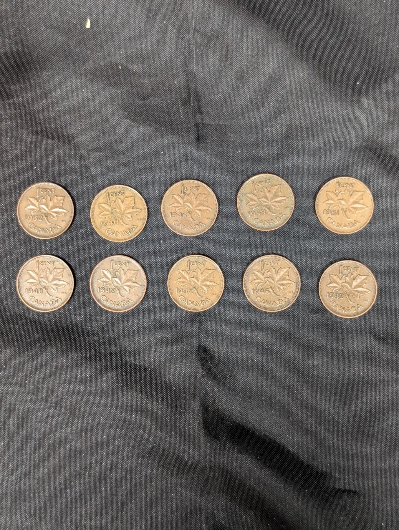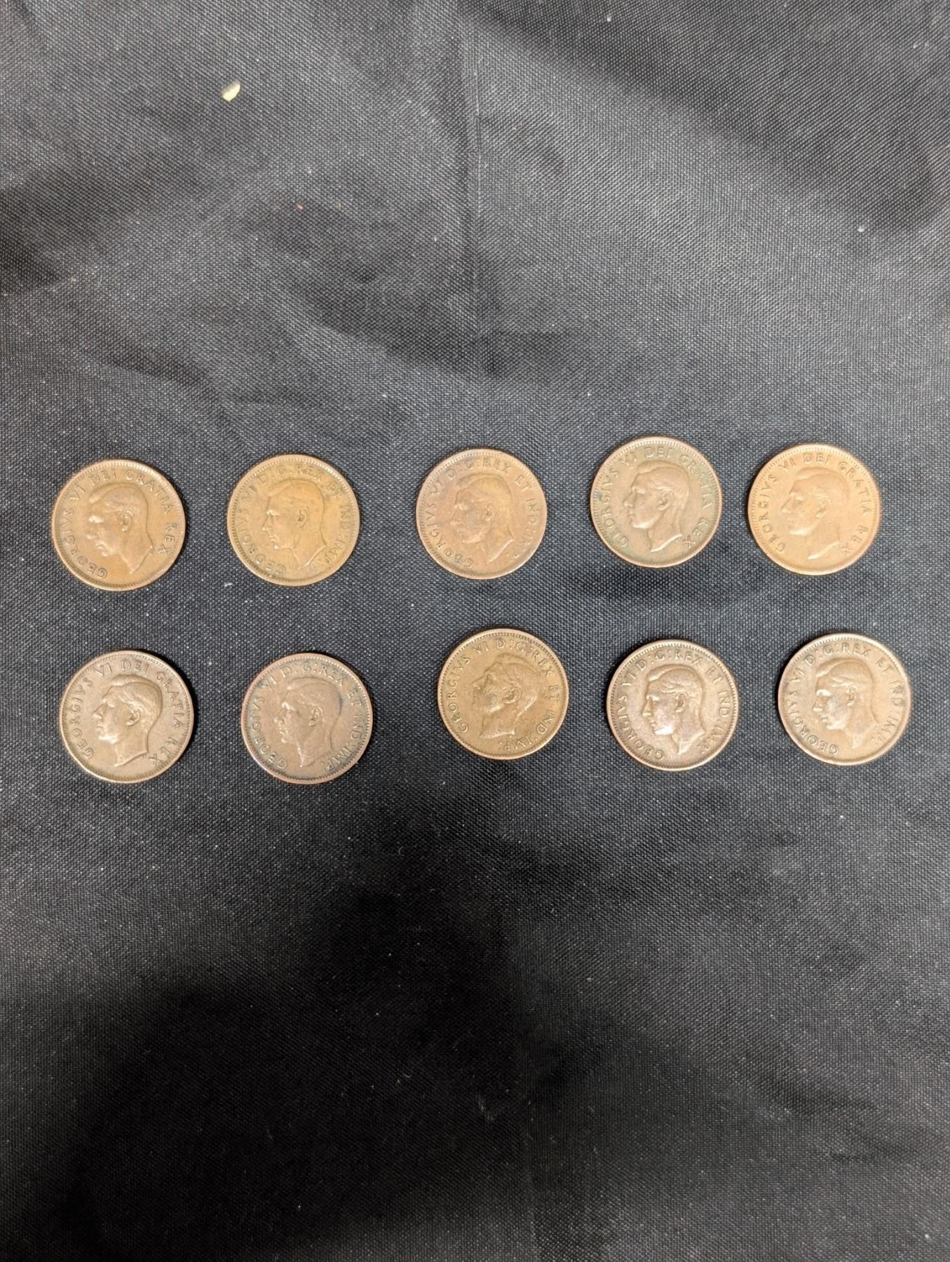 (10) Copper Penny's King George Canada 1940 1942-43 1945-49 1951-52