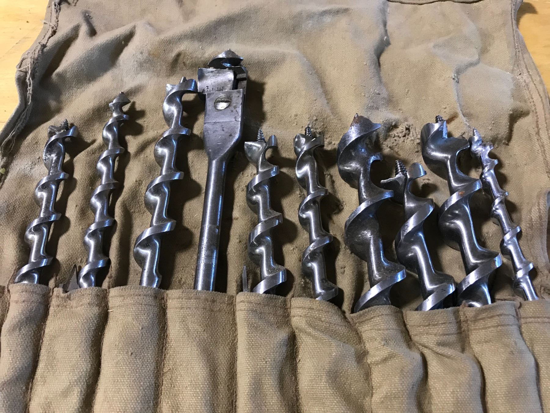 10 DRILL BITS IN ORIGNAL CANVAS HOLDER