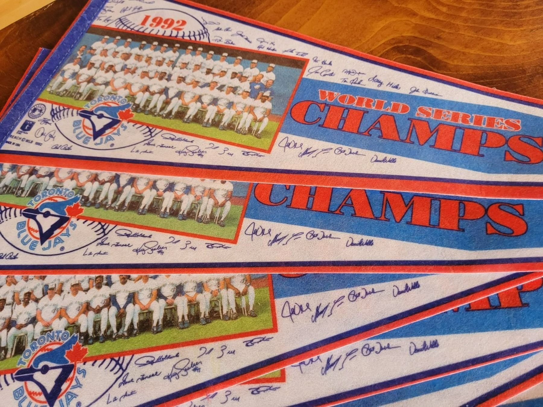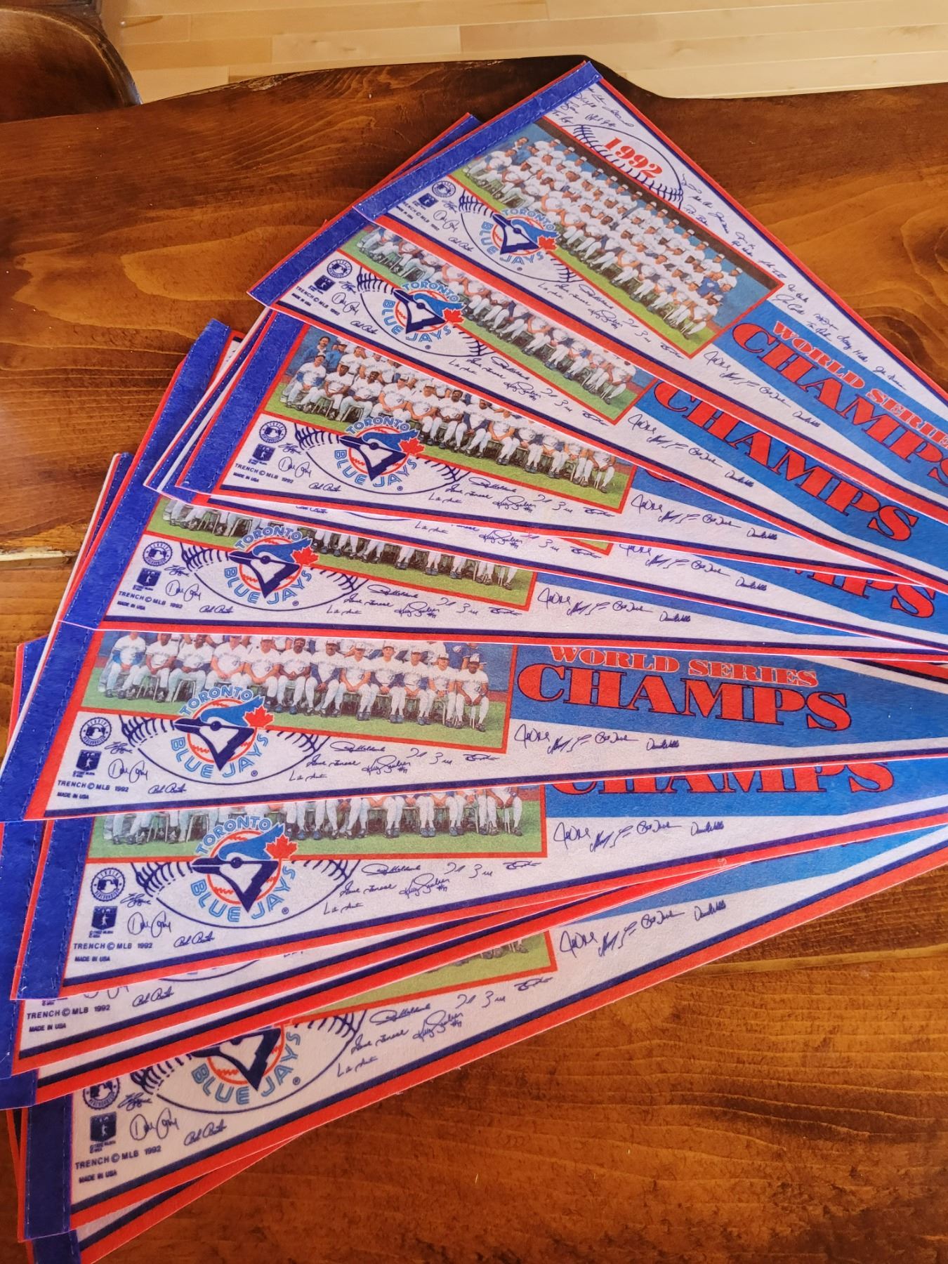 10 N.O.S. (new old stock) 1992 Blue Jays signed pennants