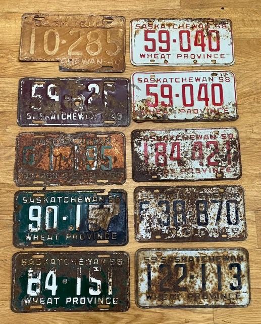 10 Saskatchewan License Plates: 1940, 1949, 1955, 1956, 1958, 1959
