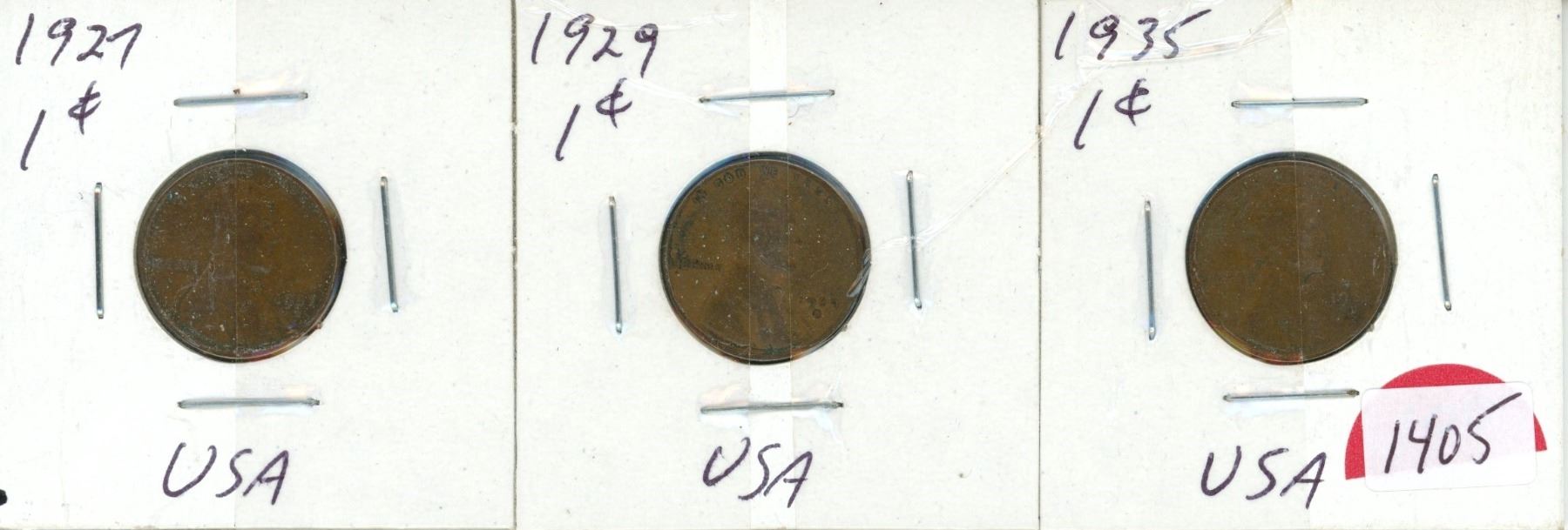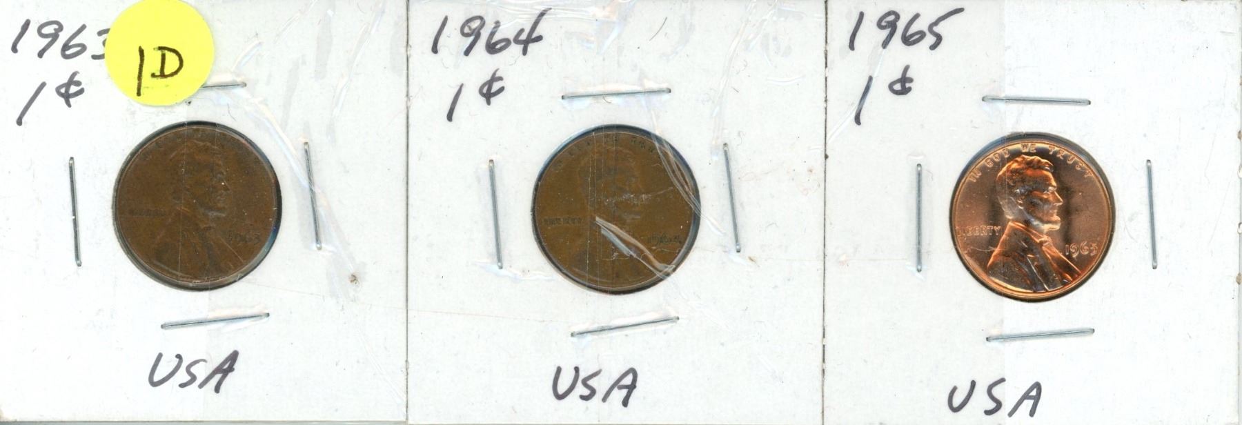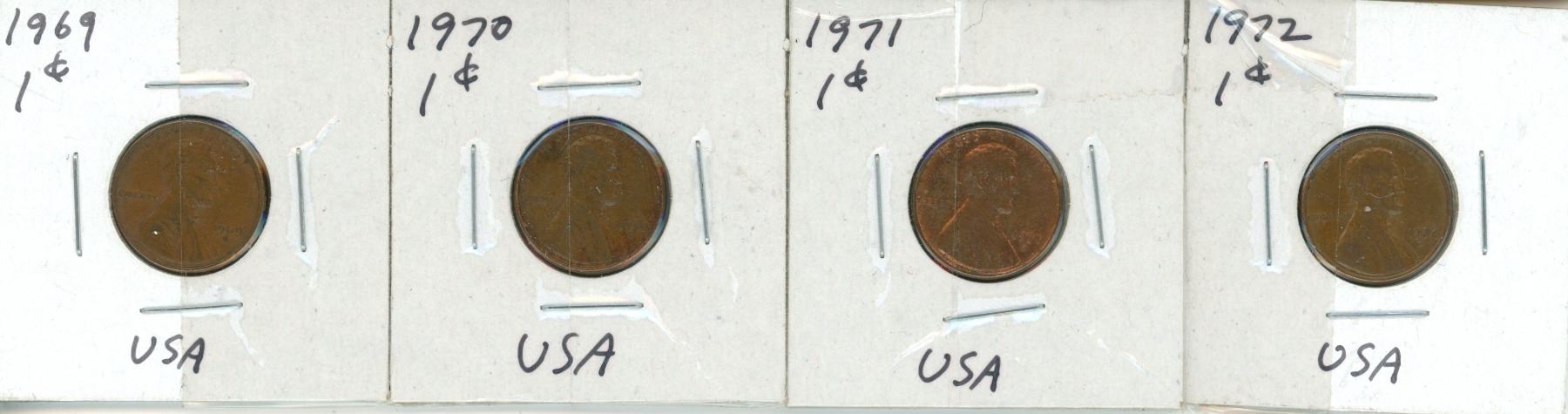 10 USA pennies ( 1927,1929,1935,1963-1965,1969-1972) in cardboard holders