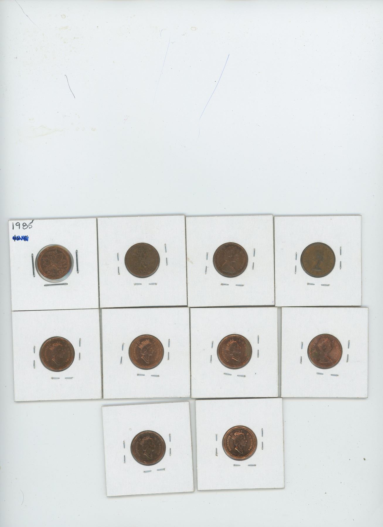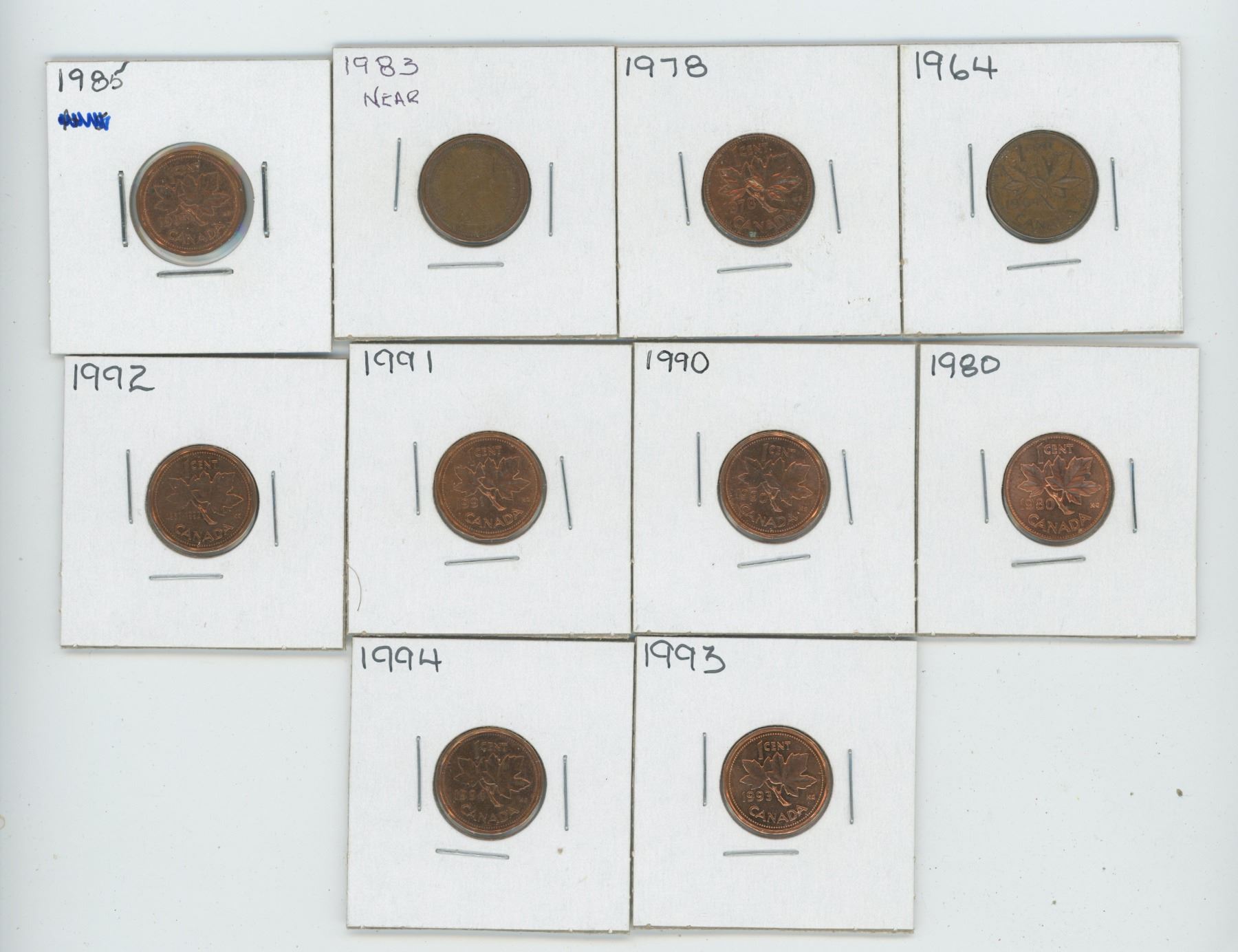 10 X Various 1964 -1994 Canadian 1 Cent Coins