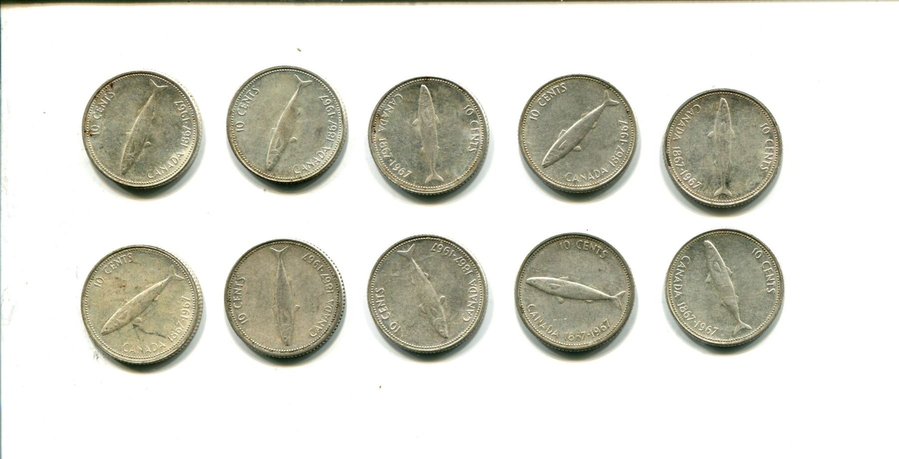 10 X silver Canada 10 cents