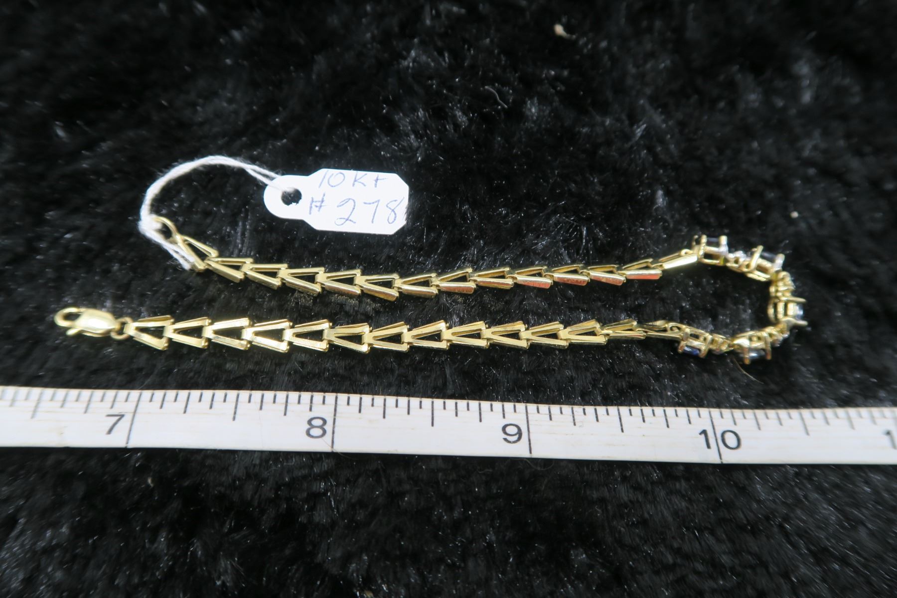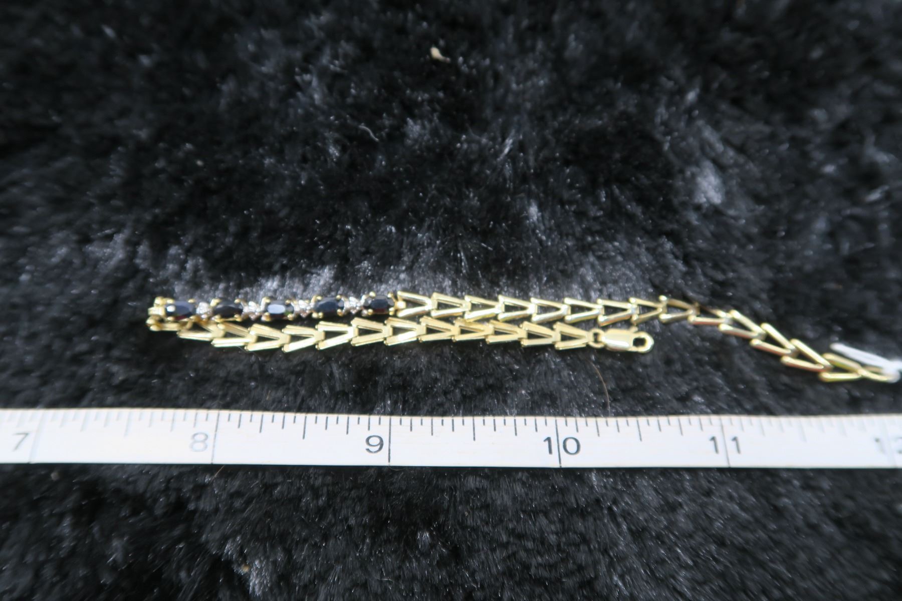 10 kt gold bracelet with black stones 7”