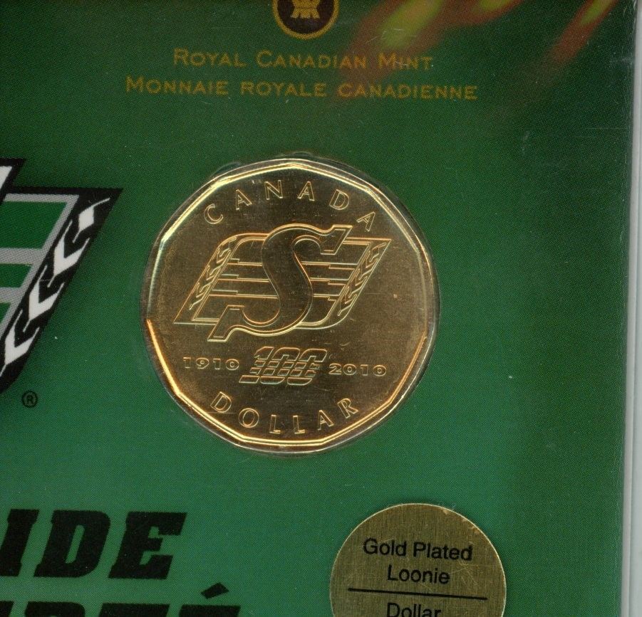 100 (1910-2010) years of pride roughriders -gold plated loonie