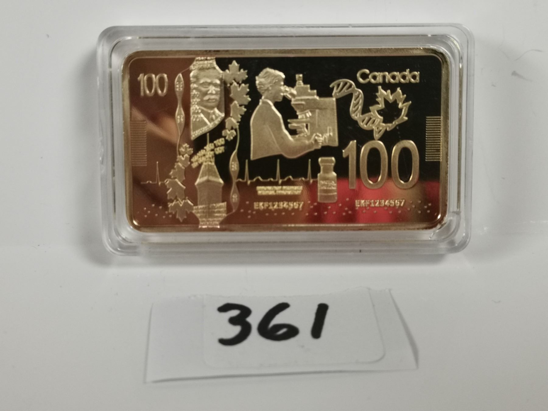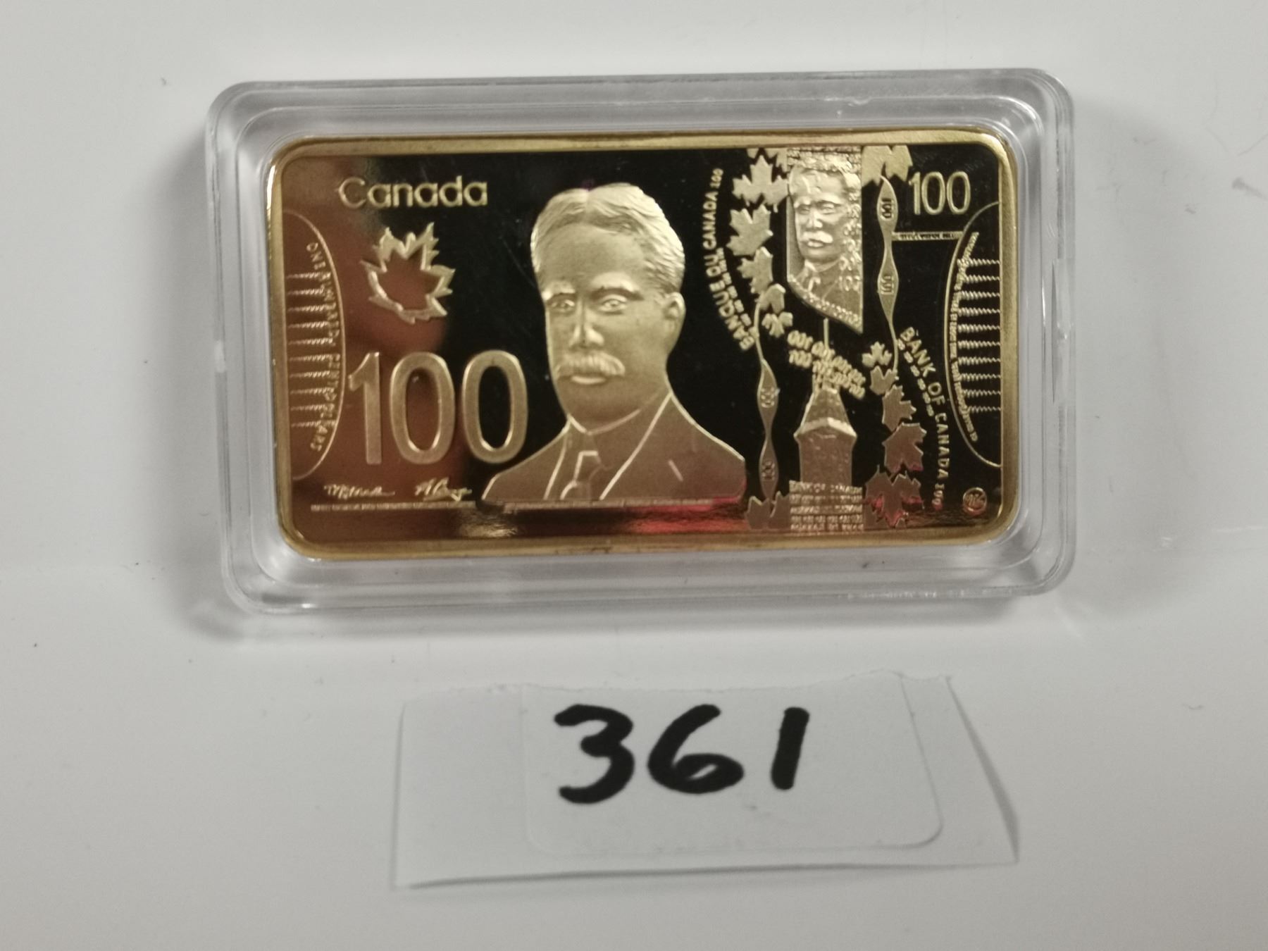 $100 Canada, 1oz gold plated copper bar