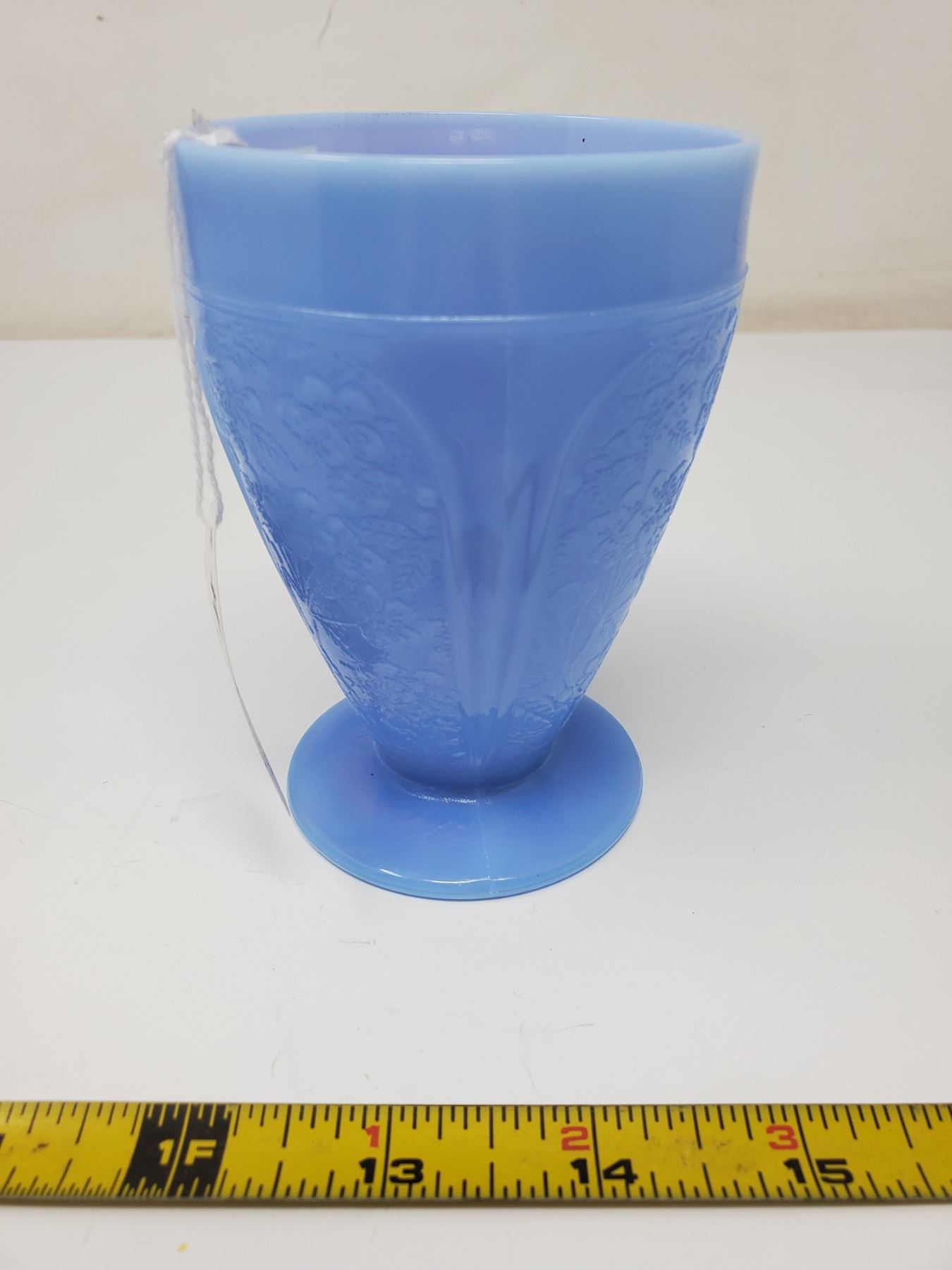 100. Delphite lemonade glass, “Cherry Blossom”, Jeanette Glass, 1930-39