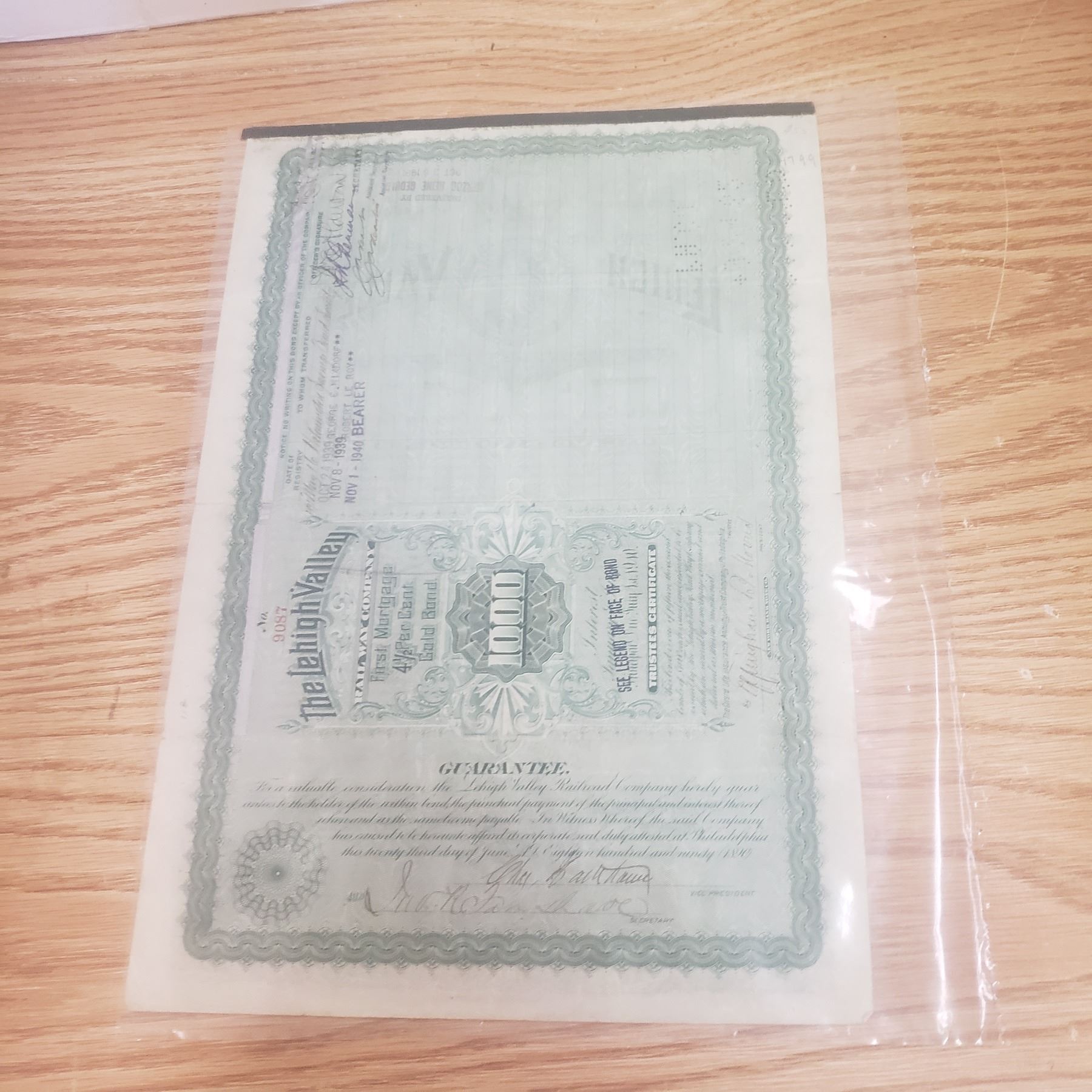 1000 bond with Leigh Valley Railway Co 1940