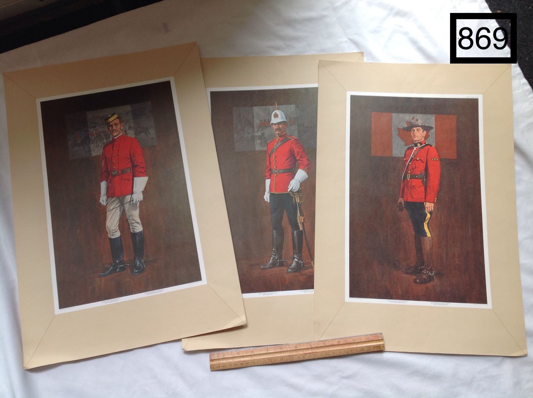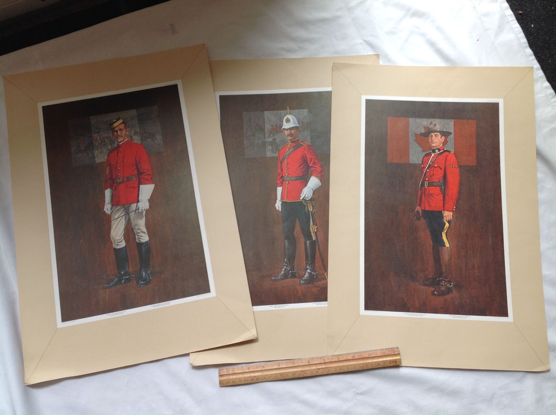 100TH ANNIVERSARY RCMP POSTERS OF HISTORIC UNIFORMS. 3 PICTURES PLUS COMMEMORATIVE TRIBUTE POSTER IN ORIGINAL ENVELOPE
