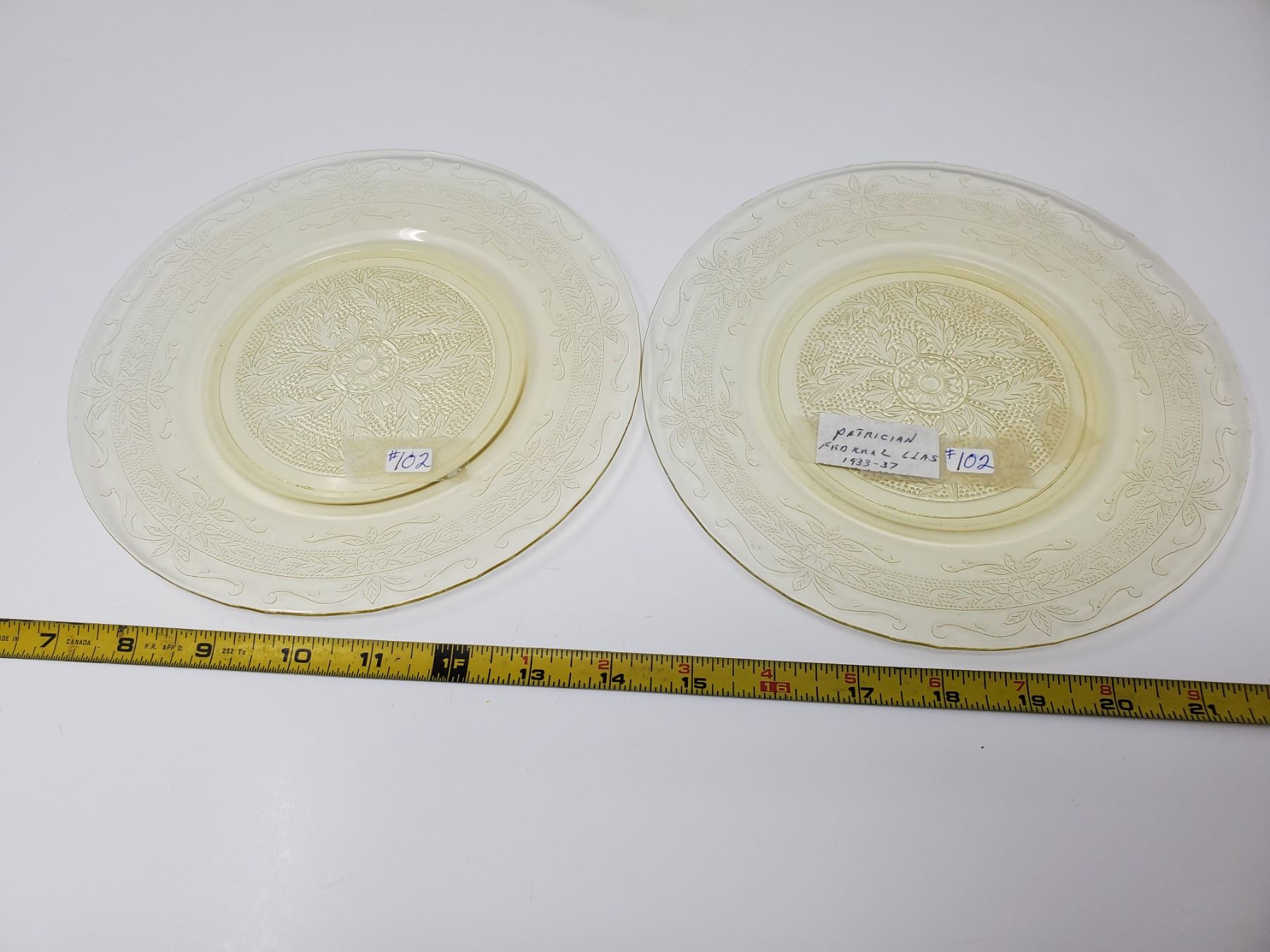 102. Yellow depression glass plates, 8’, “Patrician”, Federal Glass, 1933-37