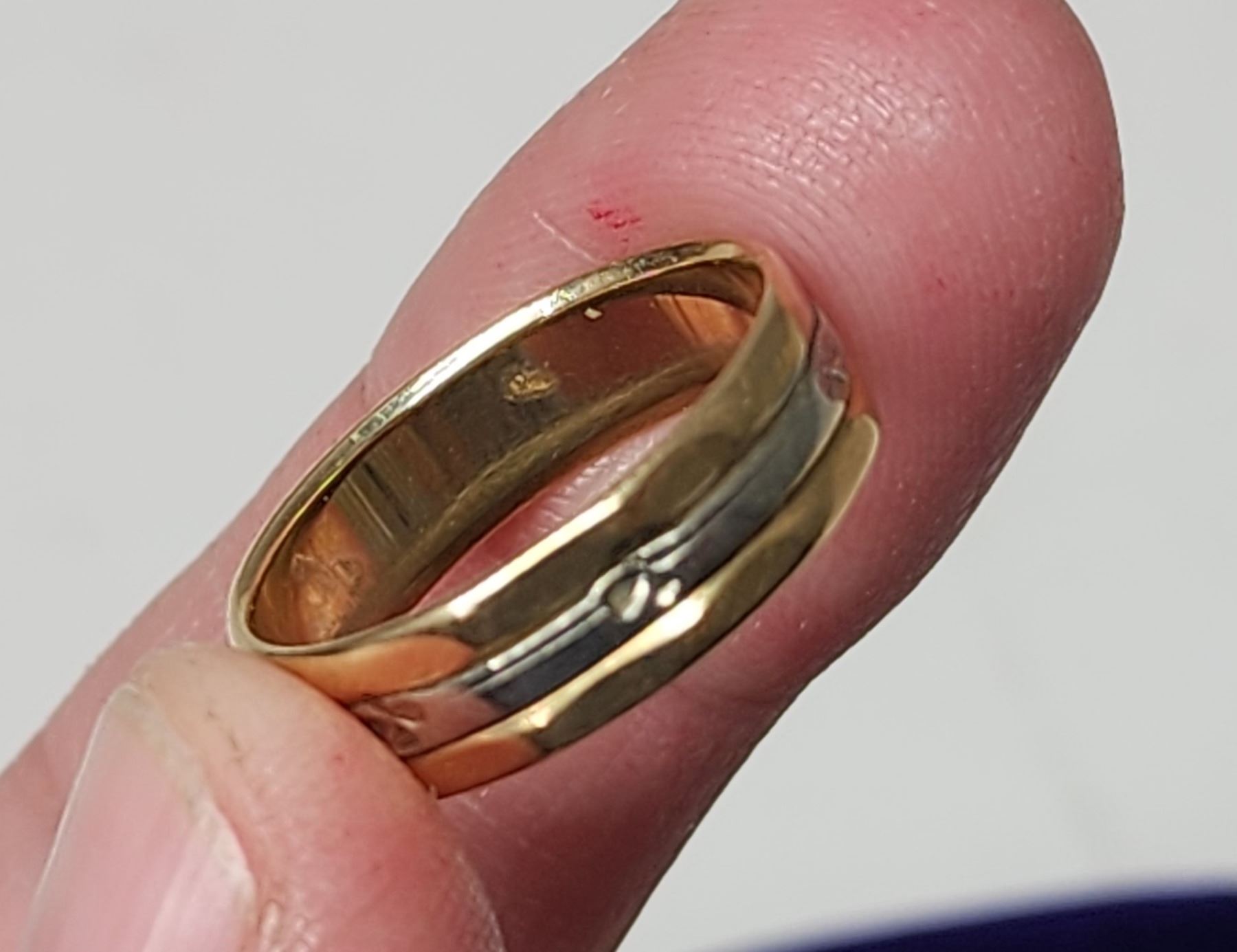 10K gold ring, silver colored accents - size unknown, best guess sz 7