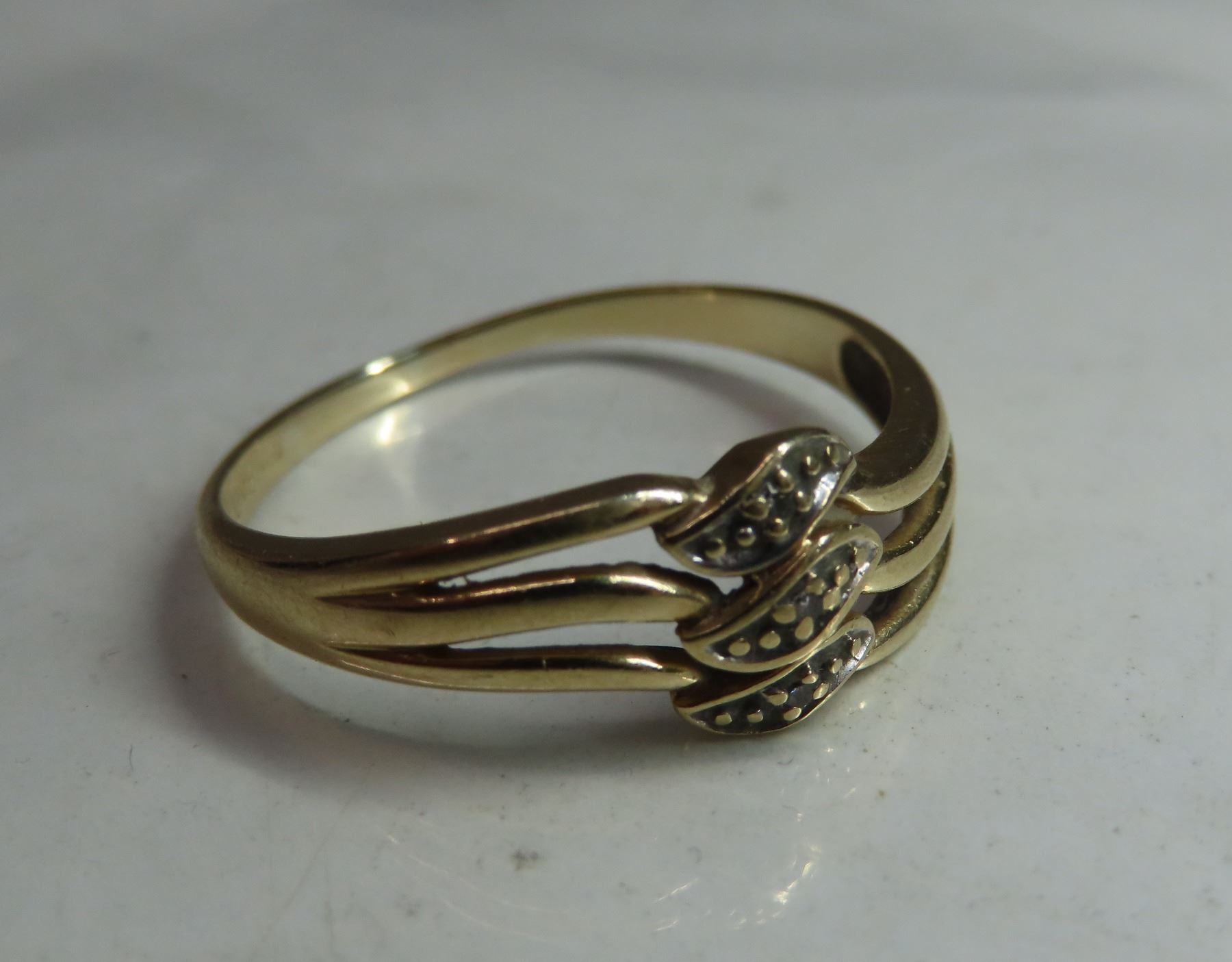 10K gold ring with 3 tiny diamonds - Columbia (diamonds unverified) - weight: 2 grams