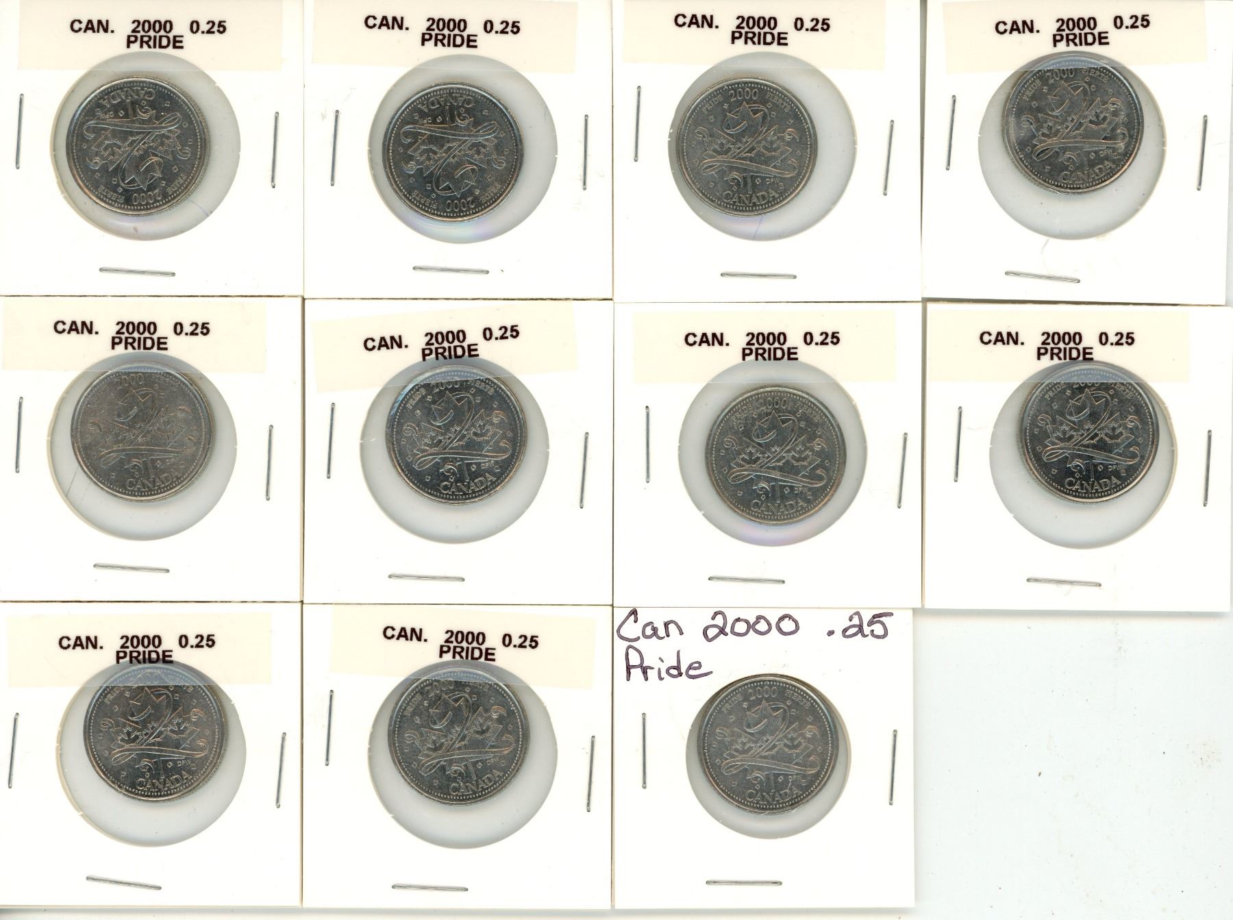 (11) 2000 Canadian Pride 25 Cents Coin.