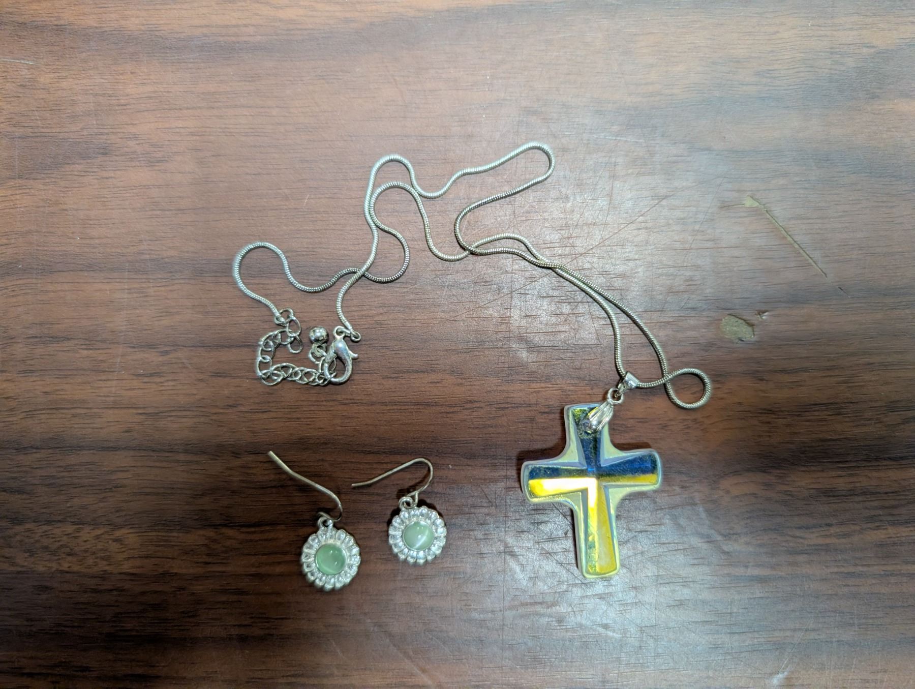11" Necklace Marked 18K Gold Plated Necklace w/ Cross (UNVERIFIED)