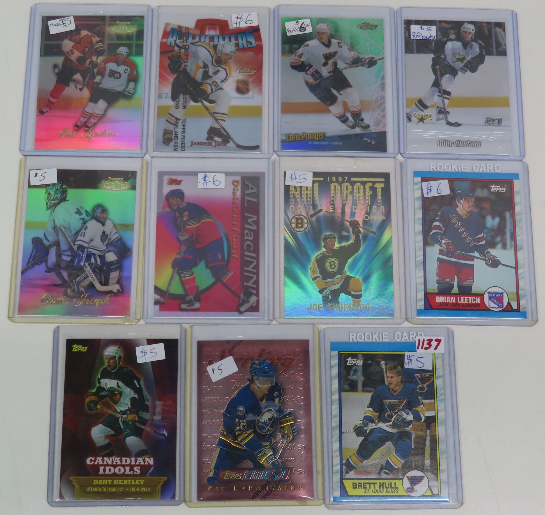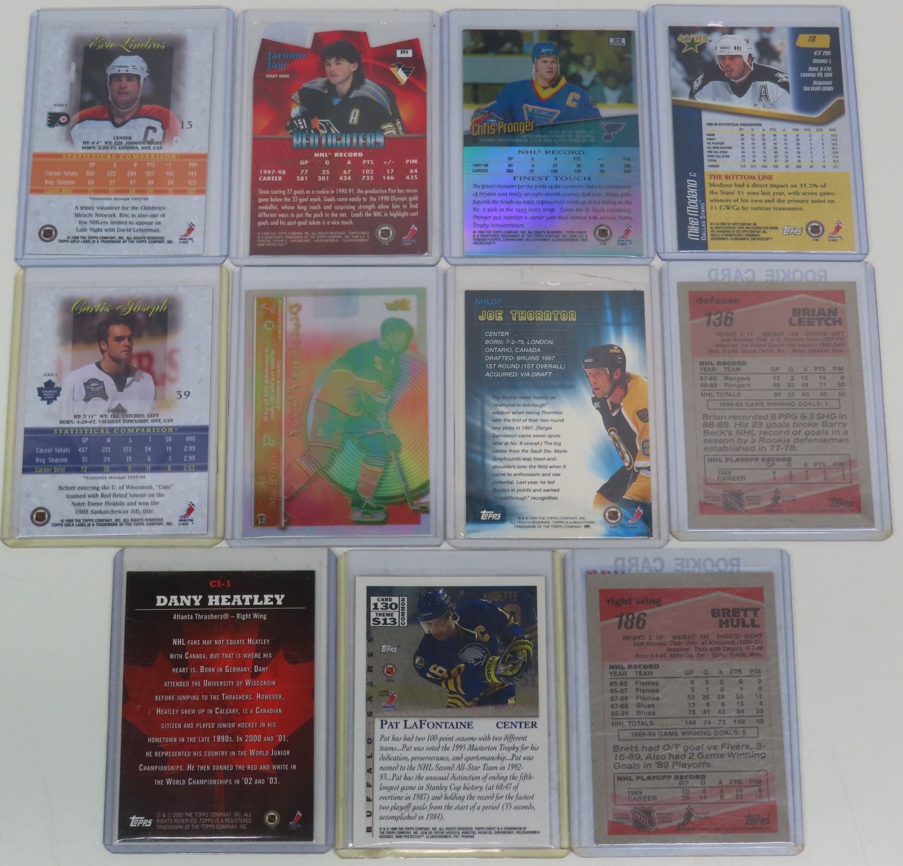 11 assorted Topps hockey cards - includes some "Topps finest" & "Topps gold label" cards