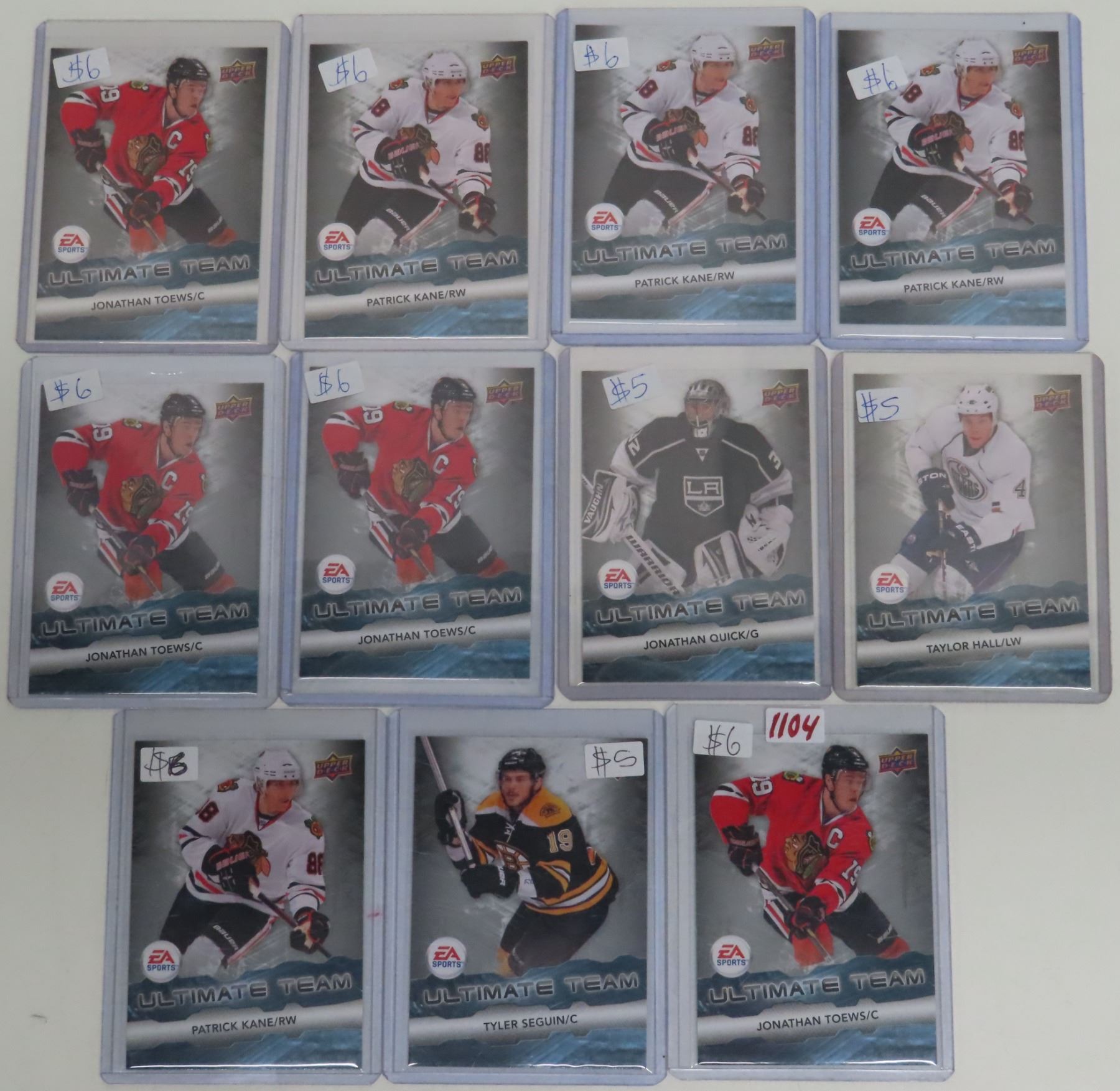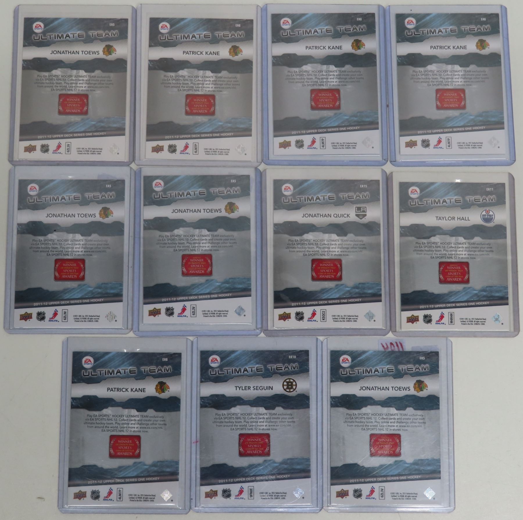 11 assorted "Ultimate Team" series UpperDeck hockey cards - in plastic holders