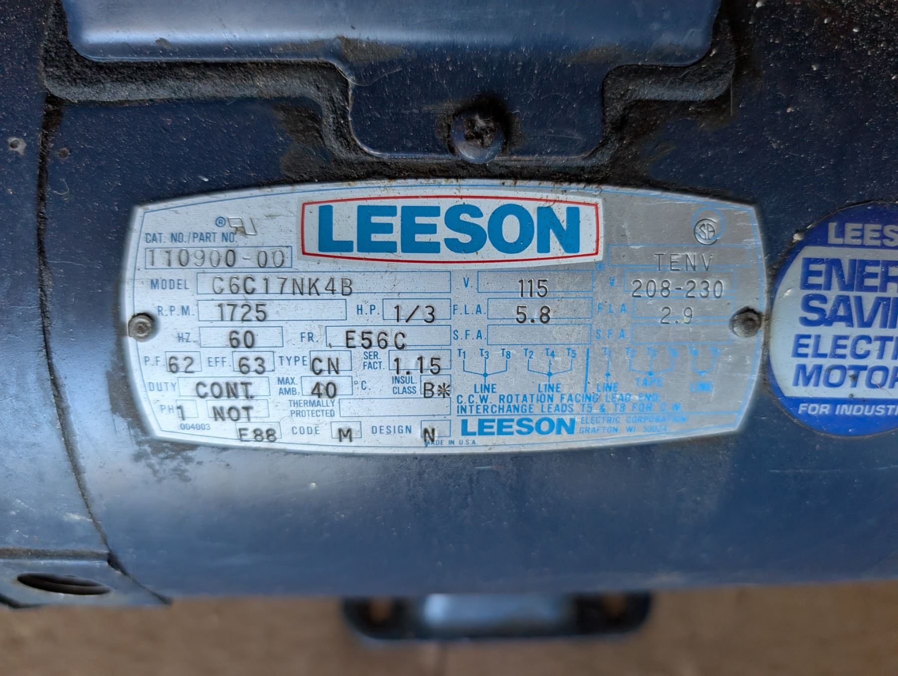 110/240 Volt 1/3 HP Motor (Works)