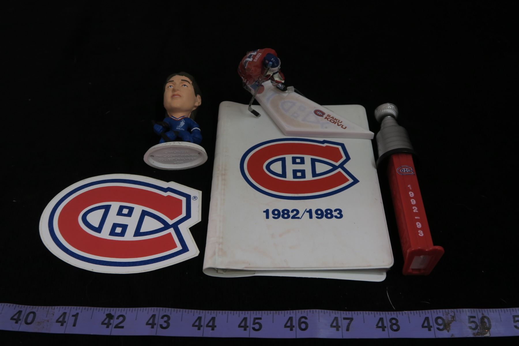#1129 - Montreal Canadiens Lot; Patrick Roy, Saku Koivu McFarlane Variant, Stanley Cup Pez & Book