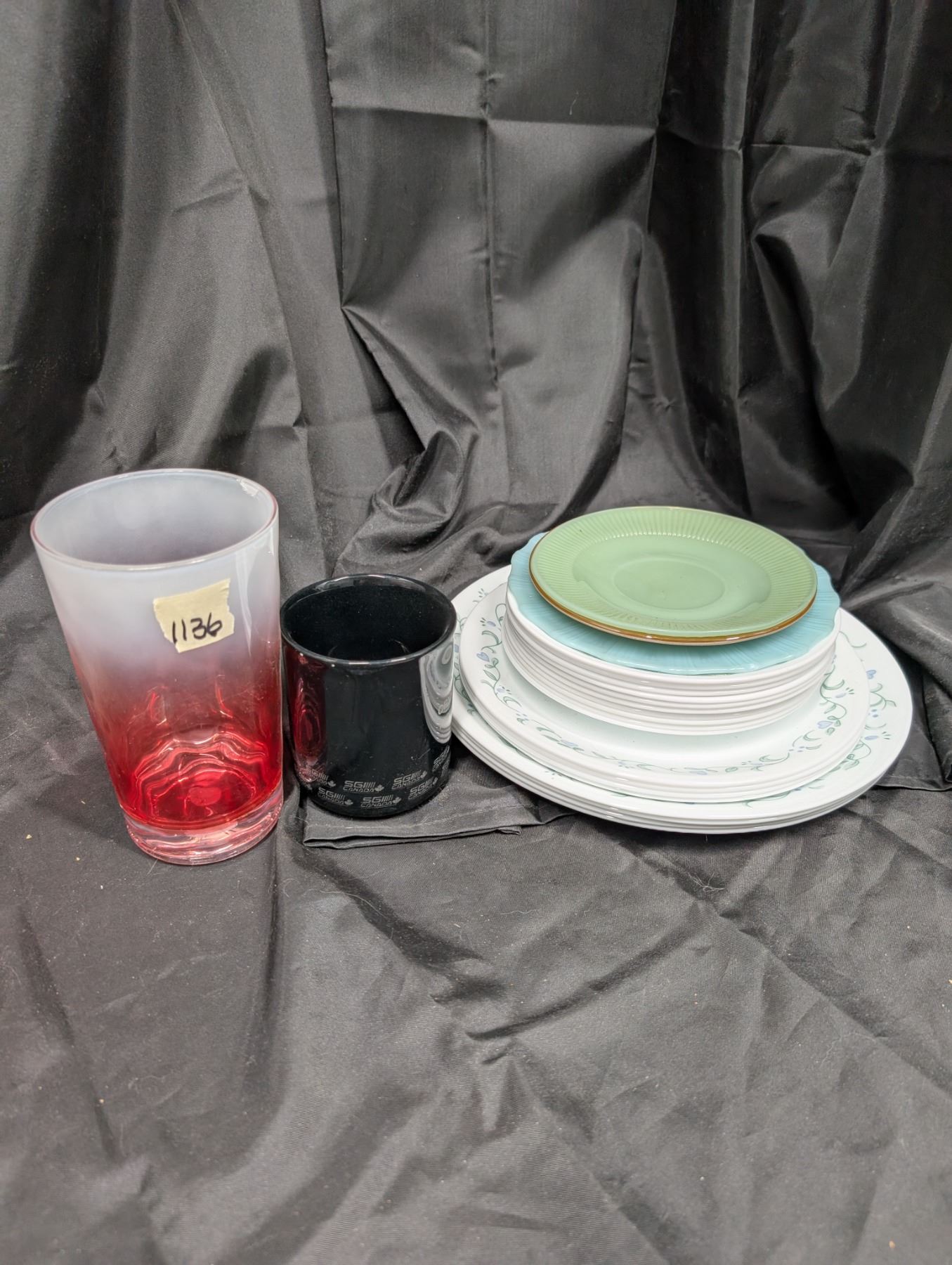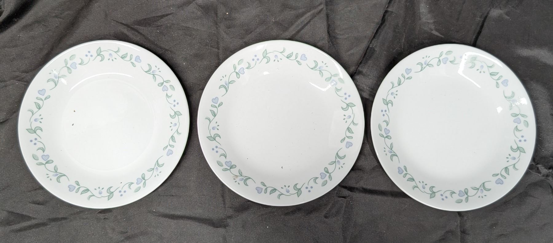 1136 Corelle Plates, 3 Pretty Vintage Plates & 2 Cups
