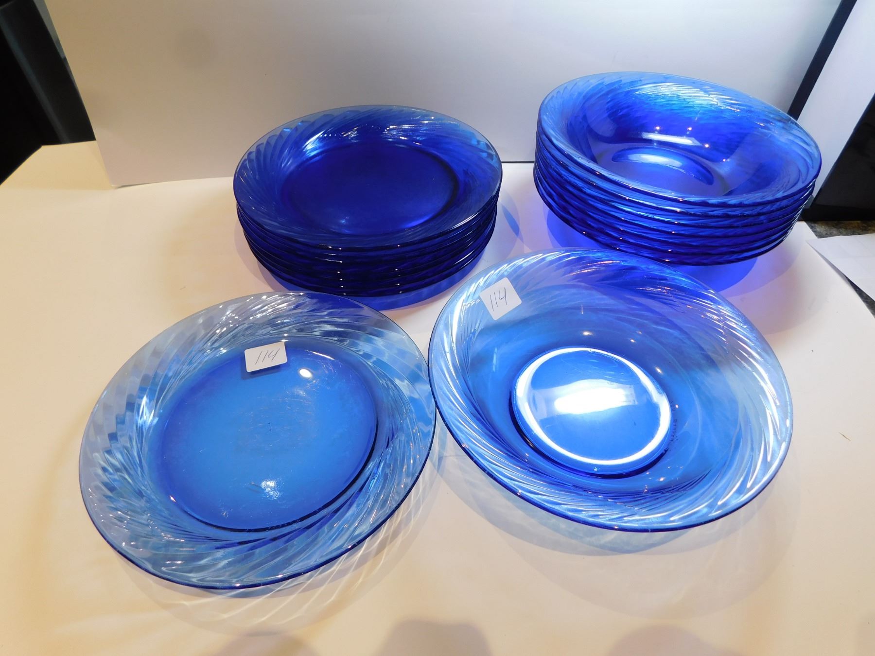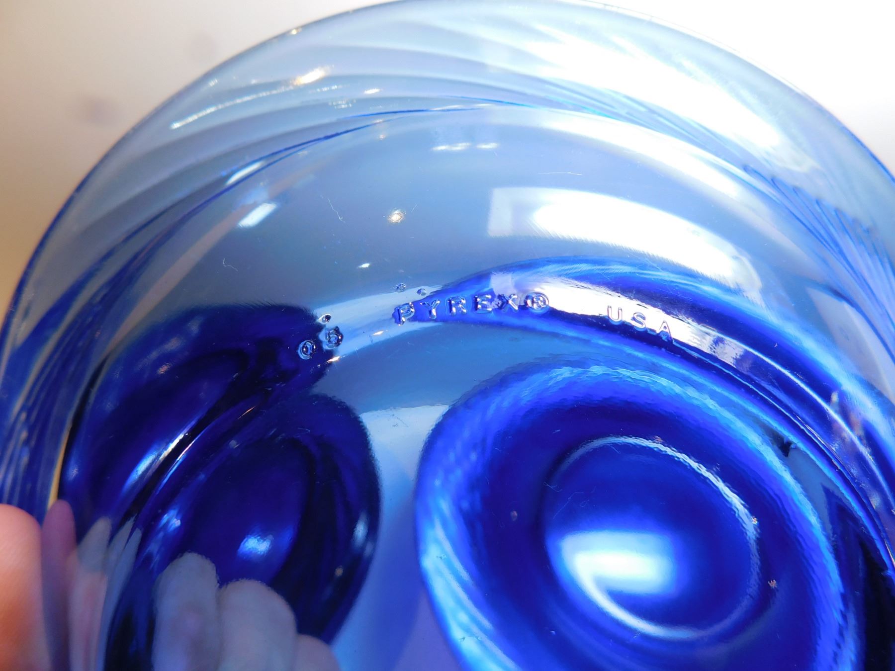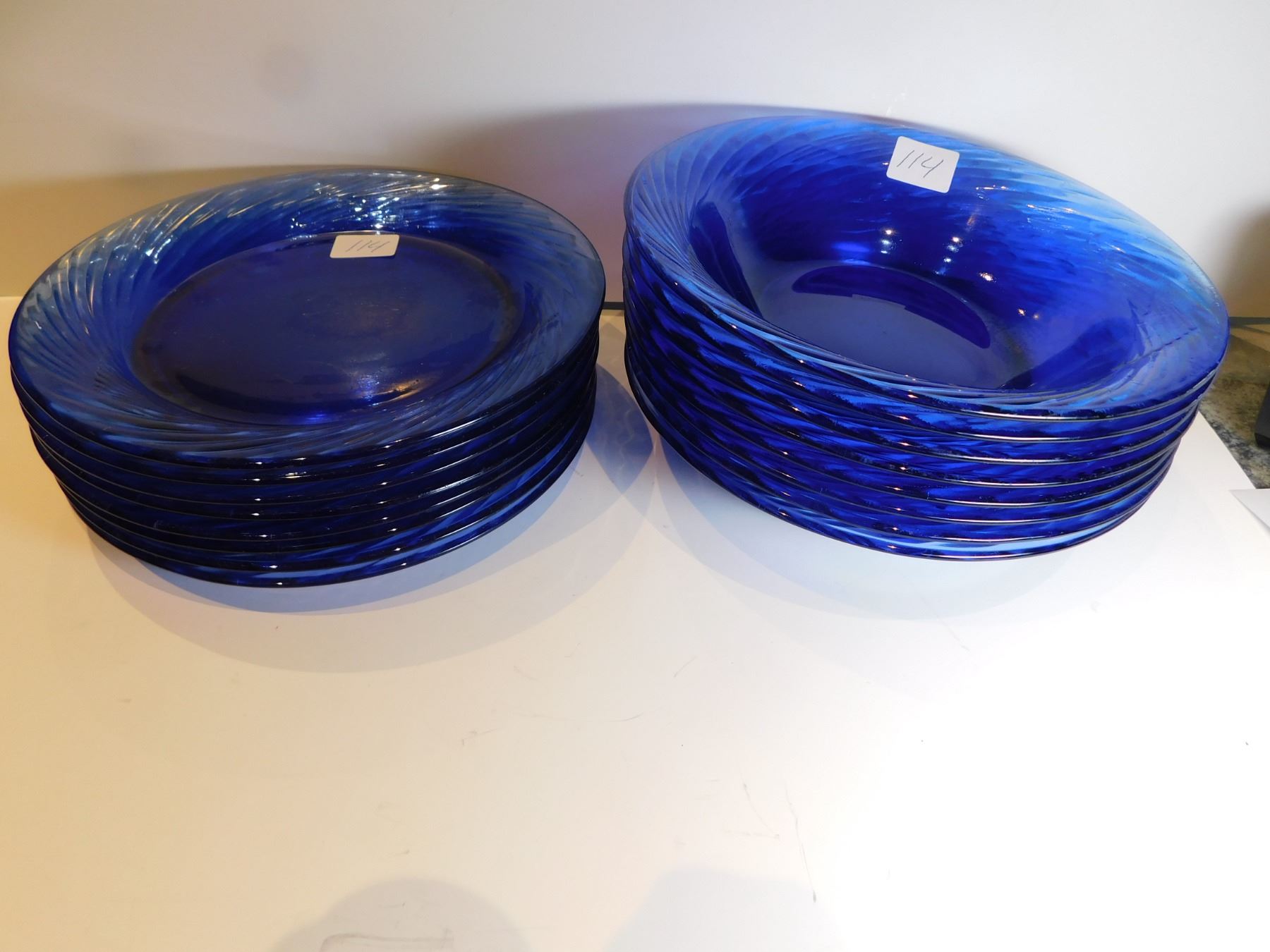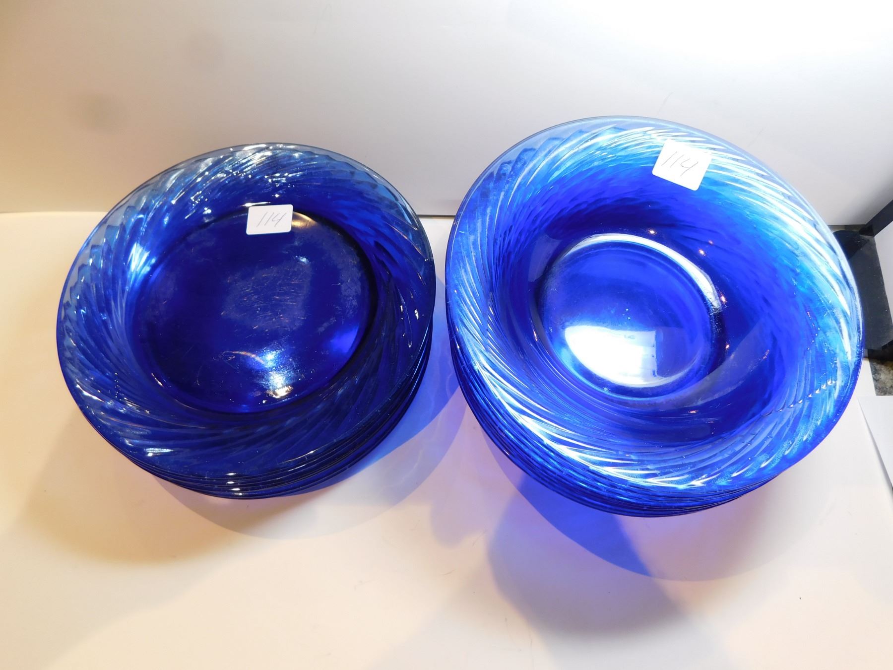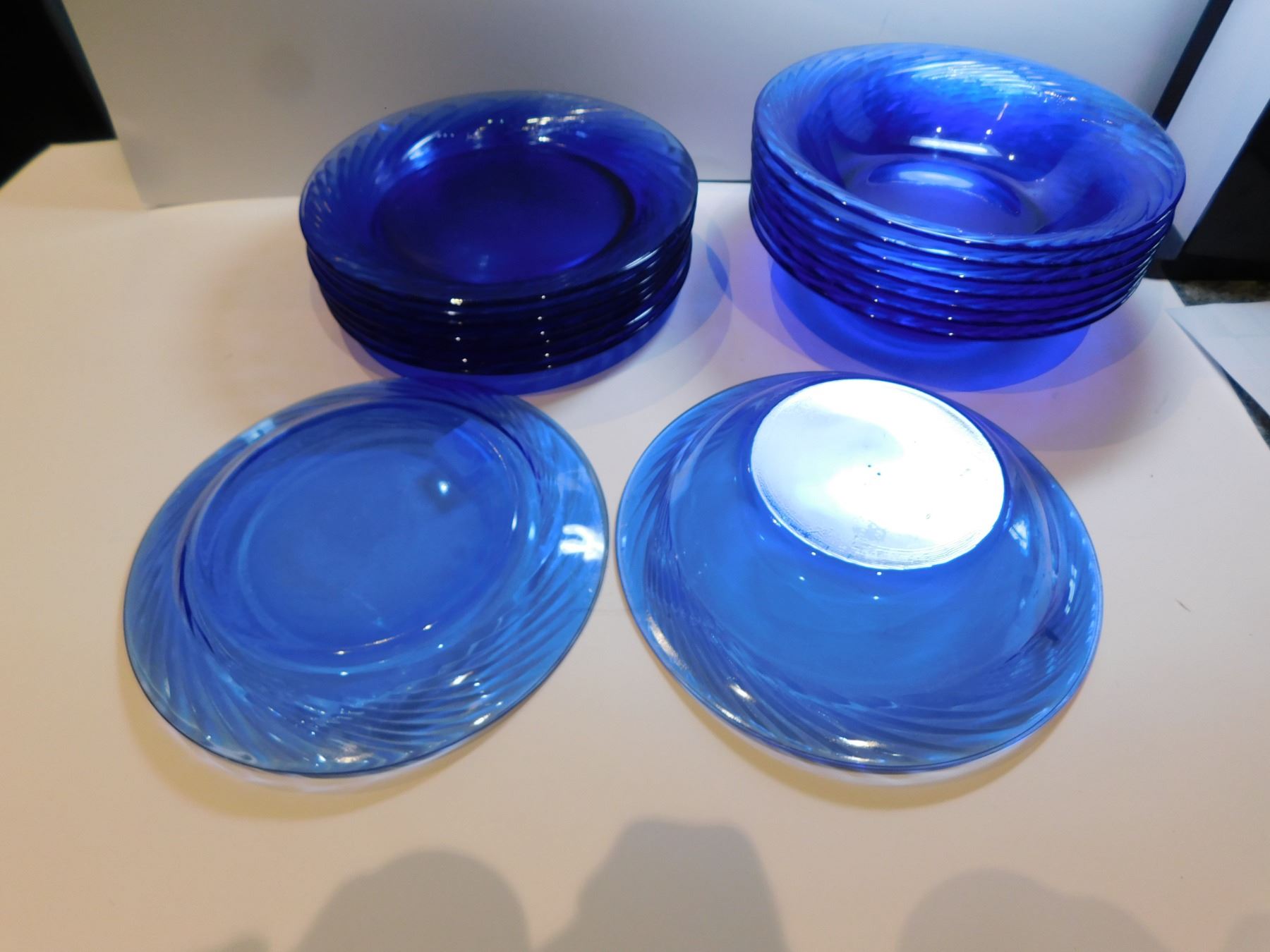 114. 8 PYREX BOWLS AND SANDWICH/SALAD PLATE, COBALT BLUE