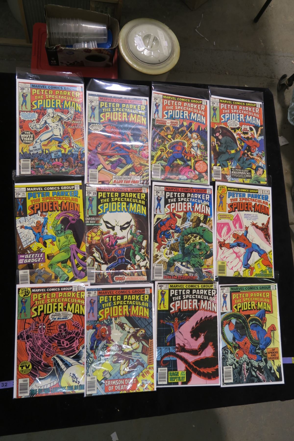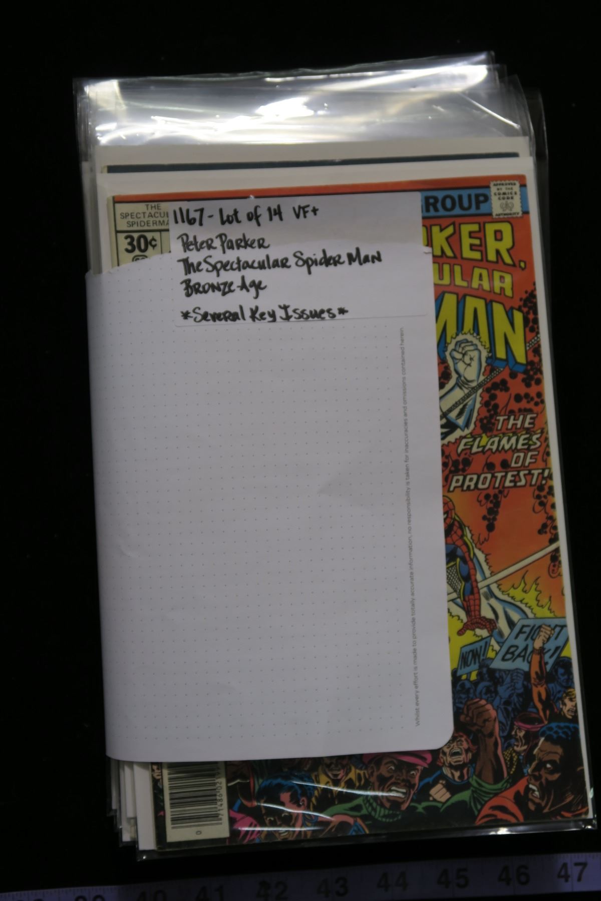 #1167 - LOT of 14 VF+ Peter Parker, The Spectacular Spiderman - Bronze Age - Several Key Issues