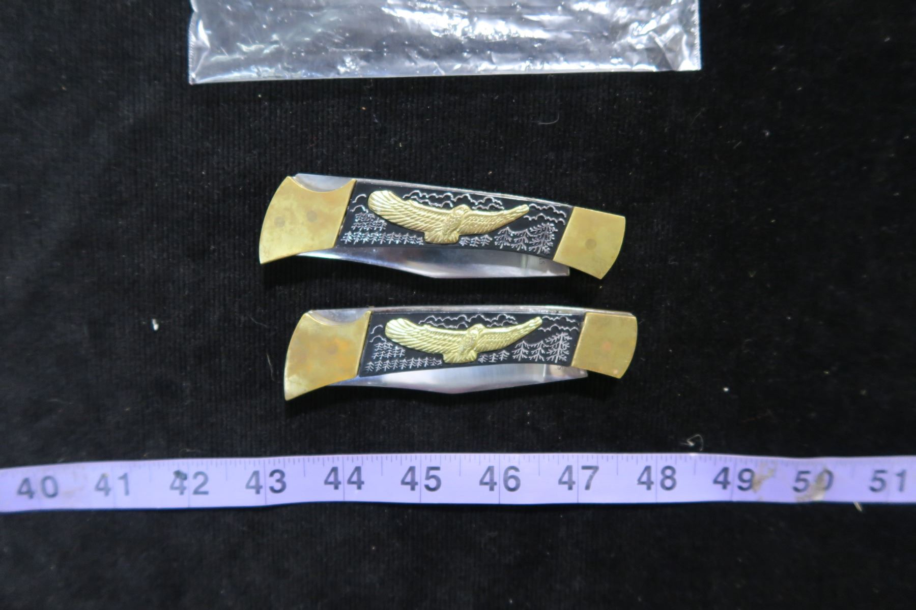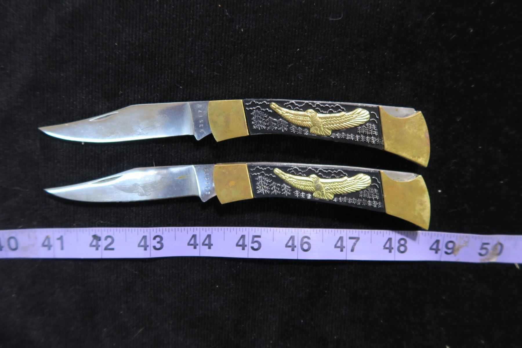 #1179 - 2 Vintage Bald Eagle Stainless Steel Lockback Pocket Knives - Never Been Used