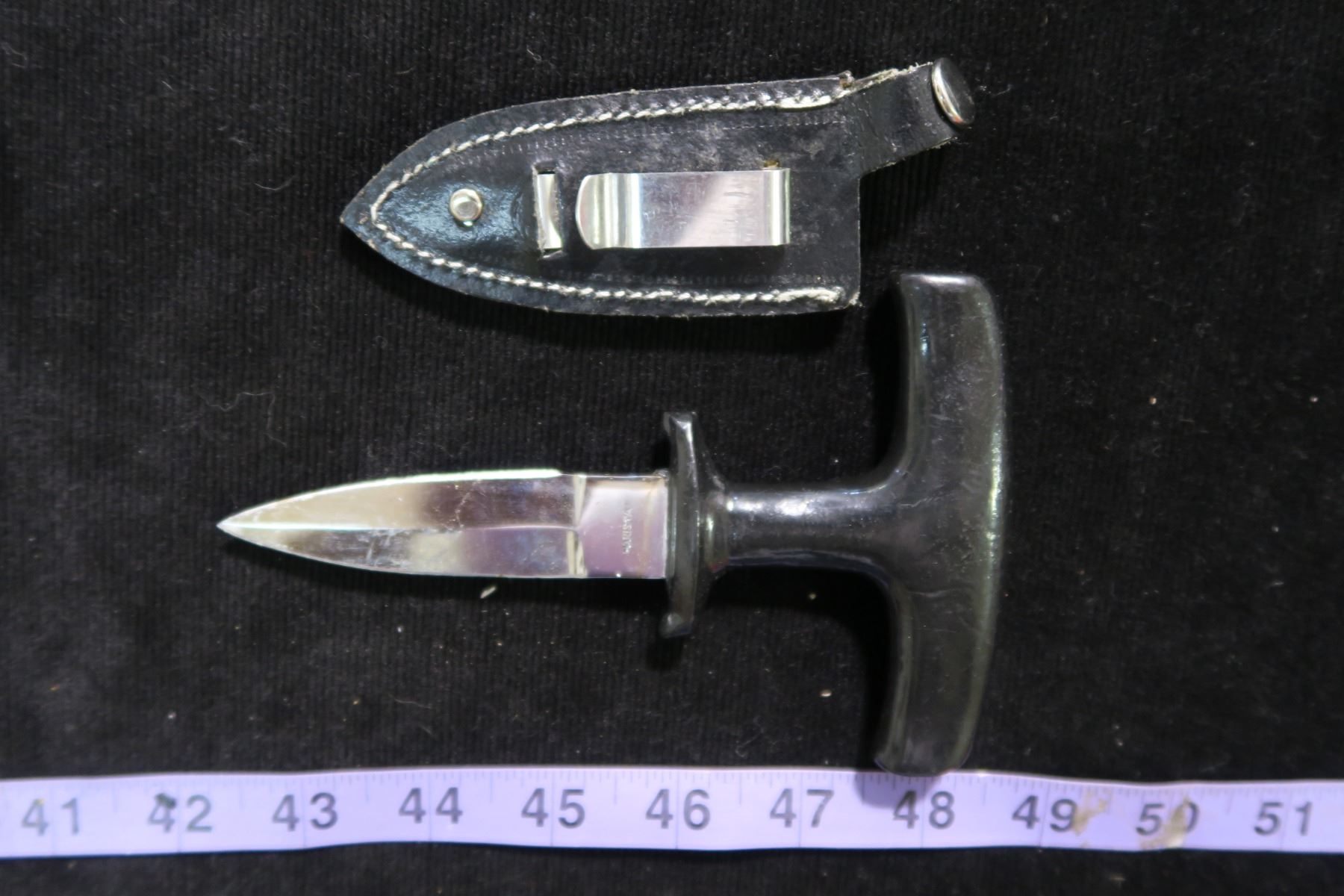 #1193 - Vintage Push Dagger with clip on sheath, nice solid handle