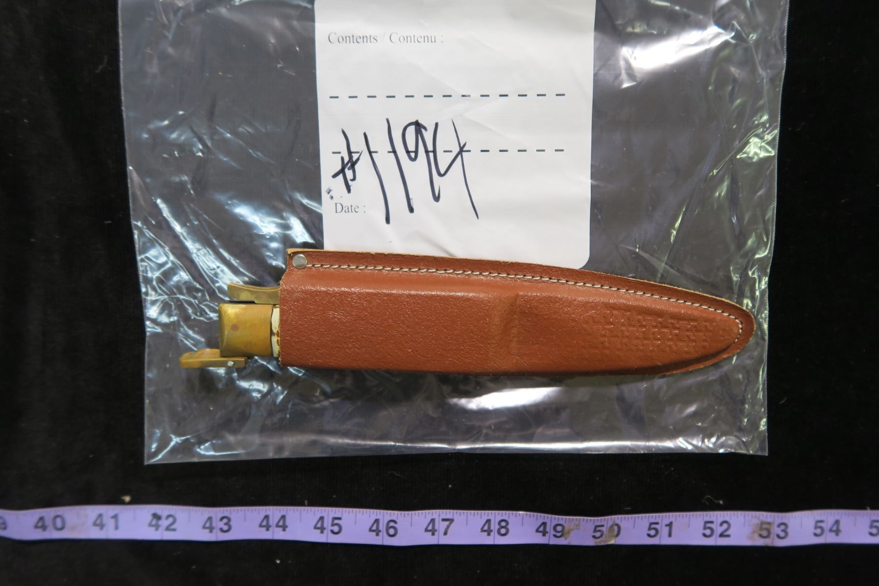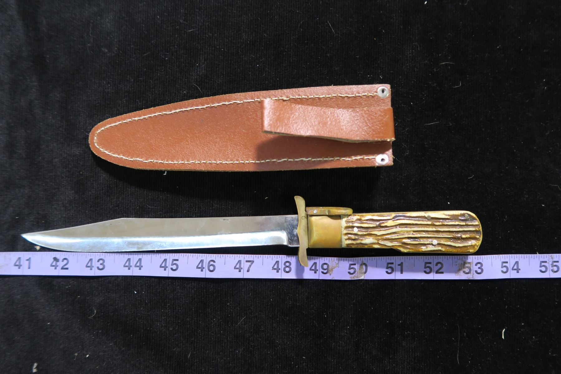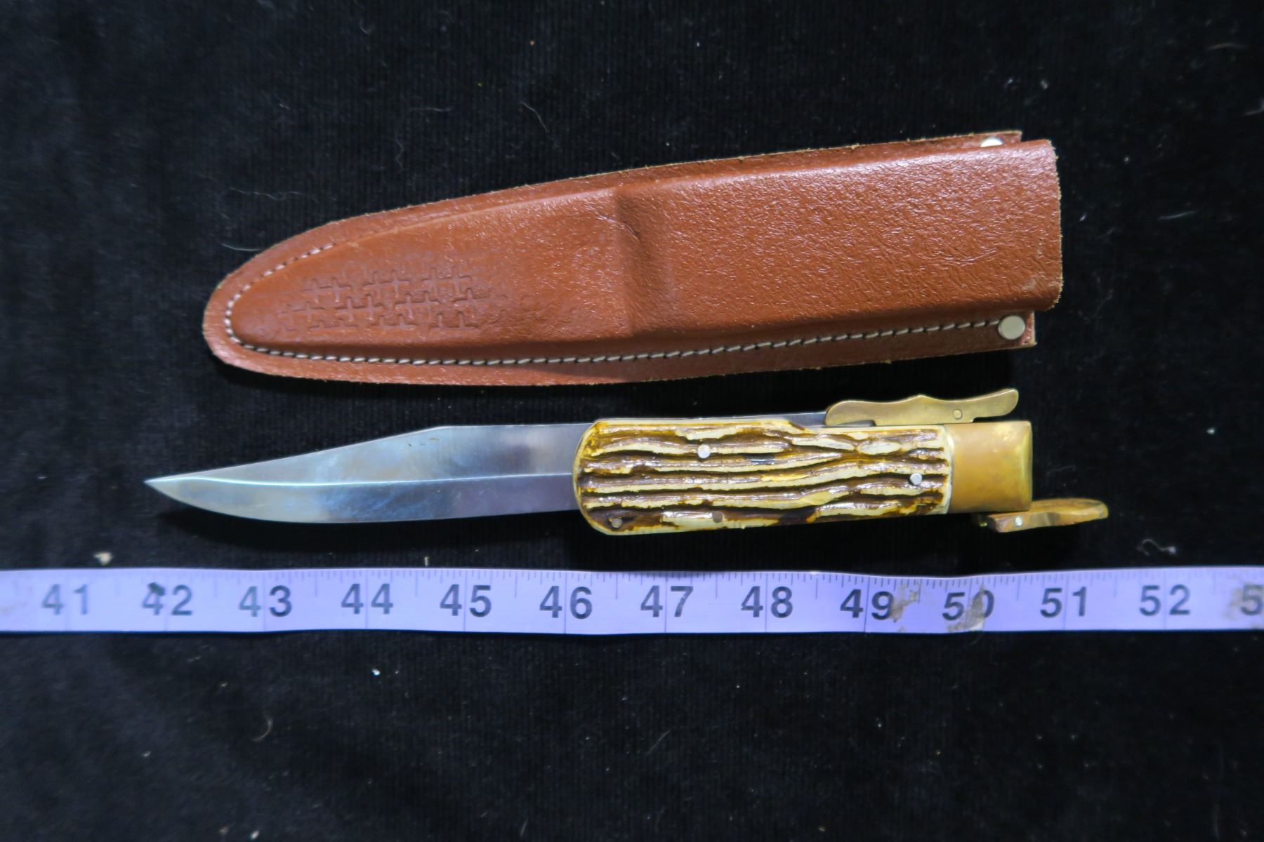 #1194 - Vintage "Pig Sticker" Hunting Lock Blade, Super Long, With Sheath