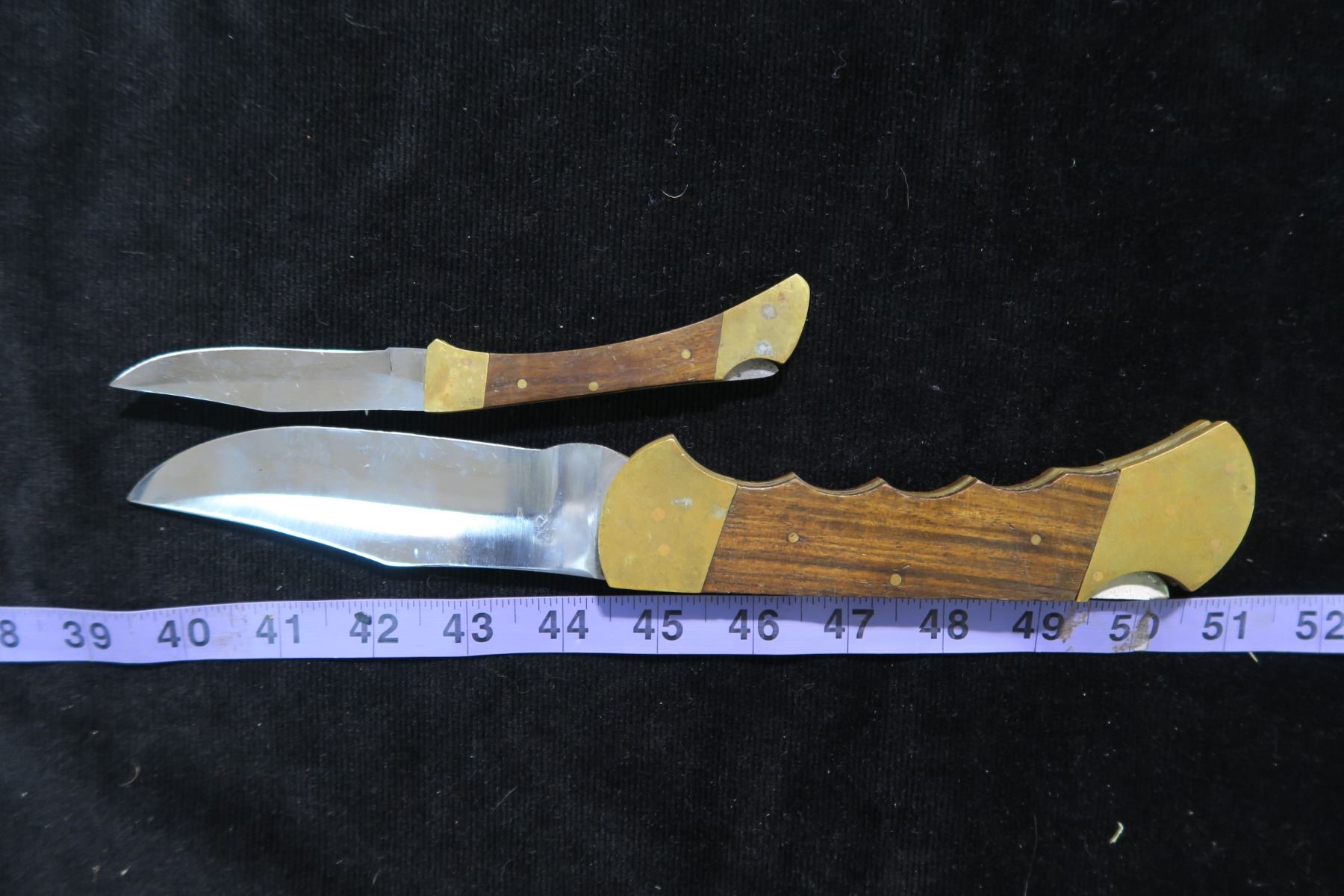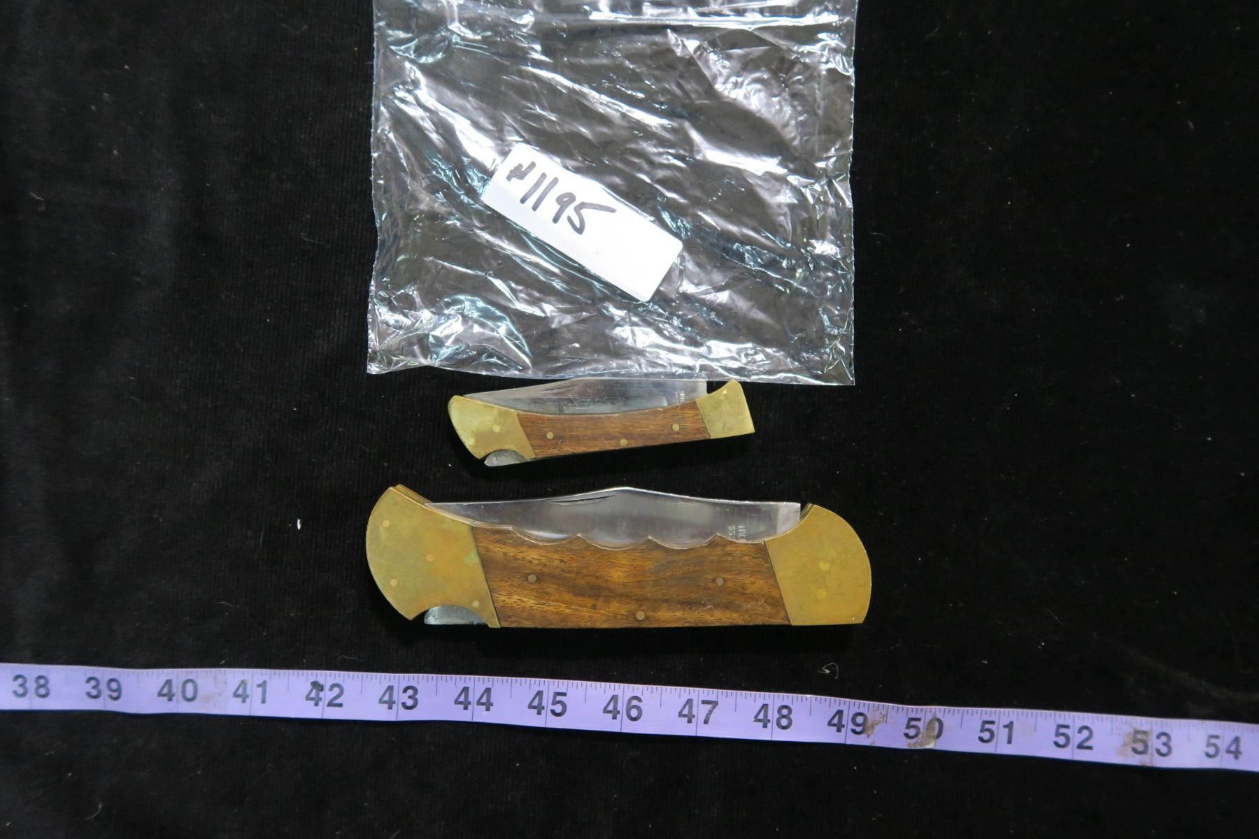 #1195 - 2 Vintage Buck Knives; Wood Handle Single Blade Pakistan Bucks 7.5" and 11.5"