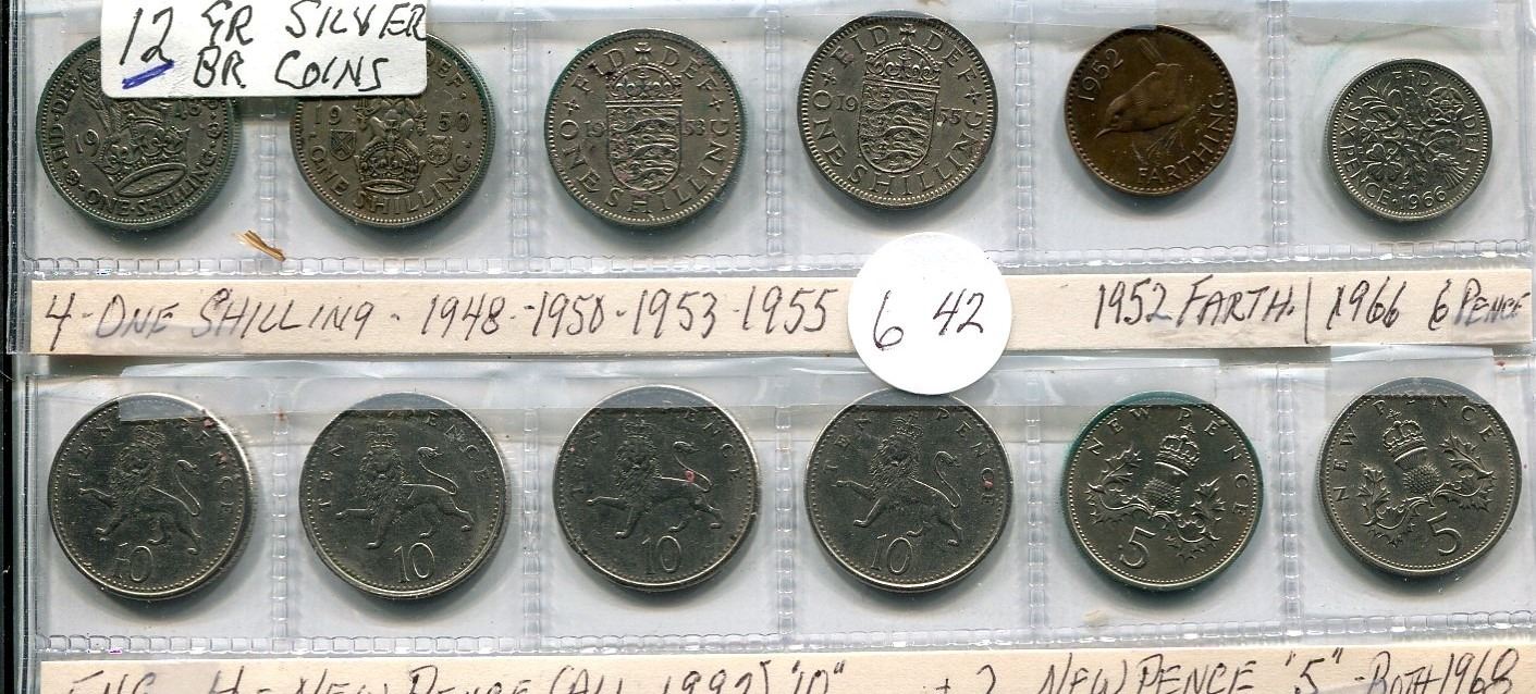 (12) 1948-55 (4) ONE SHILLING +1952 FARTHING +1966 6 PENCE + 4 - 1992 NEW PENCE (10) + 2 NEW PENCE (5) 1968
