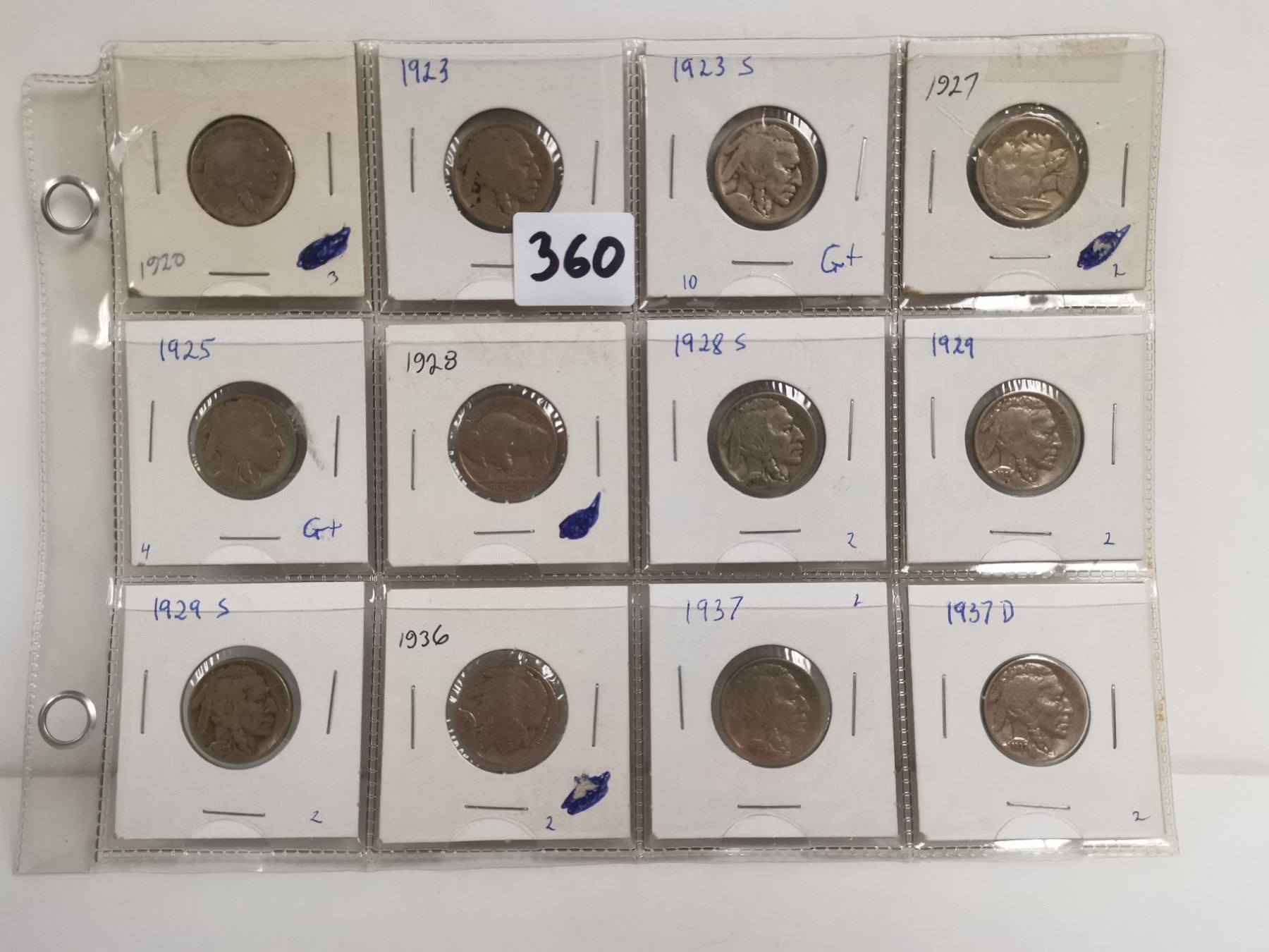 12 Buffalo nickles 5¢, 1920-1931 coins
