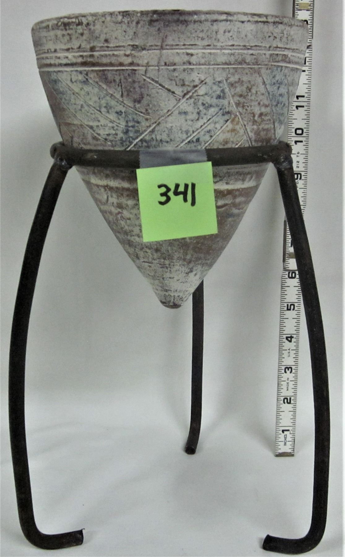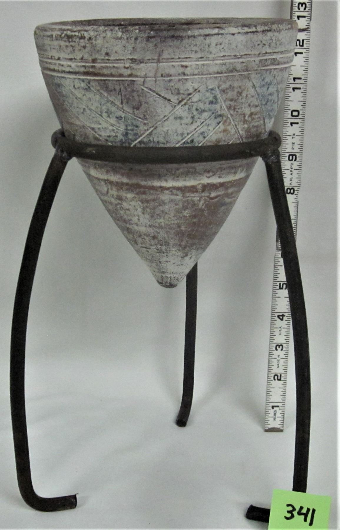 12" Ceramic "Tear Drop" Planter / Metal Stand Aztec Pattern