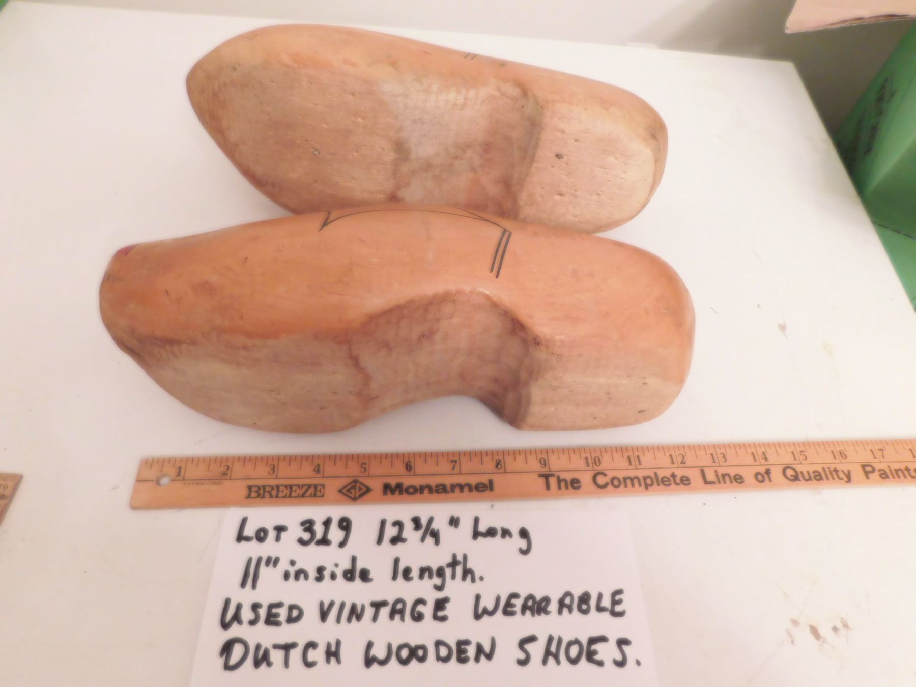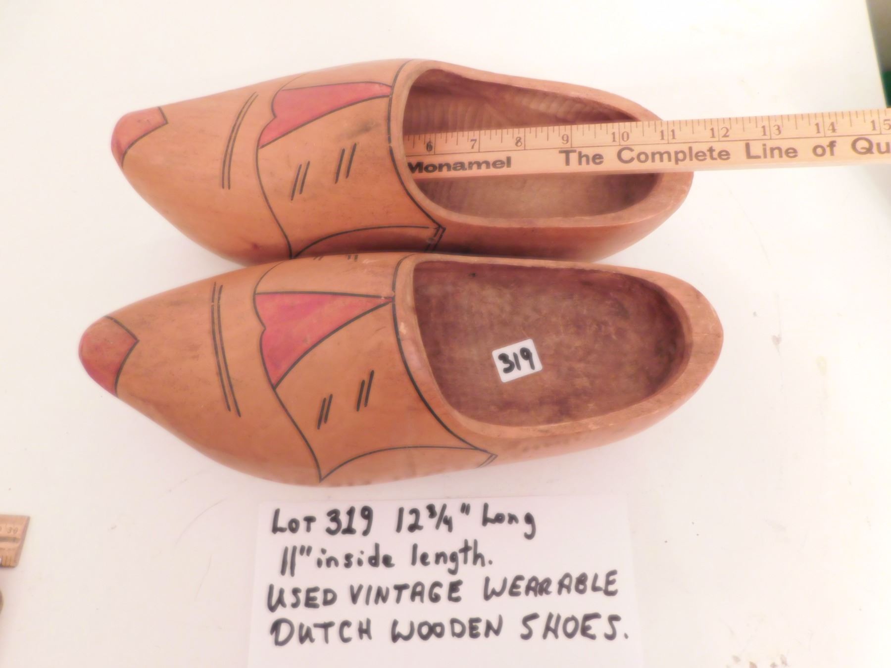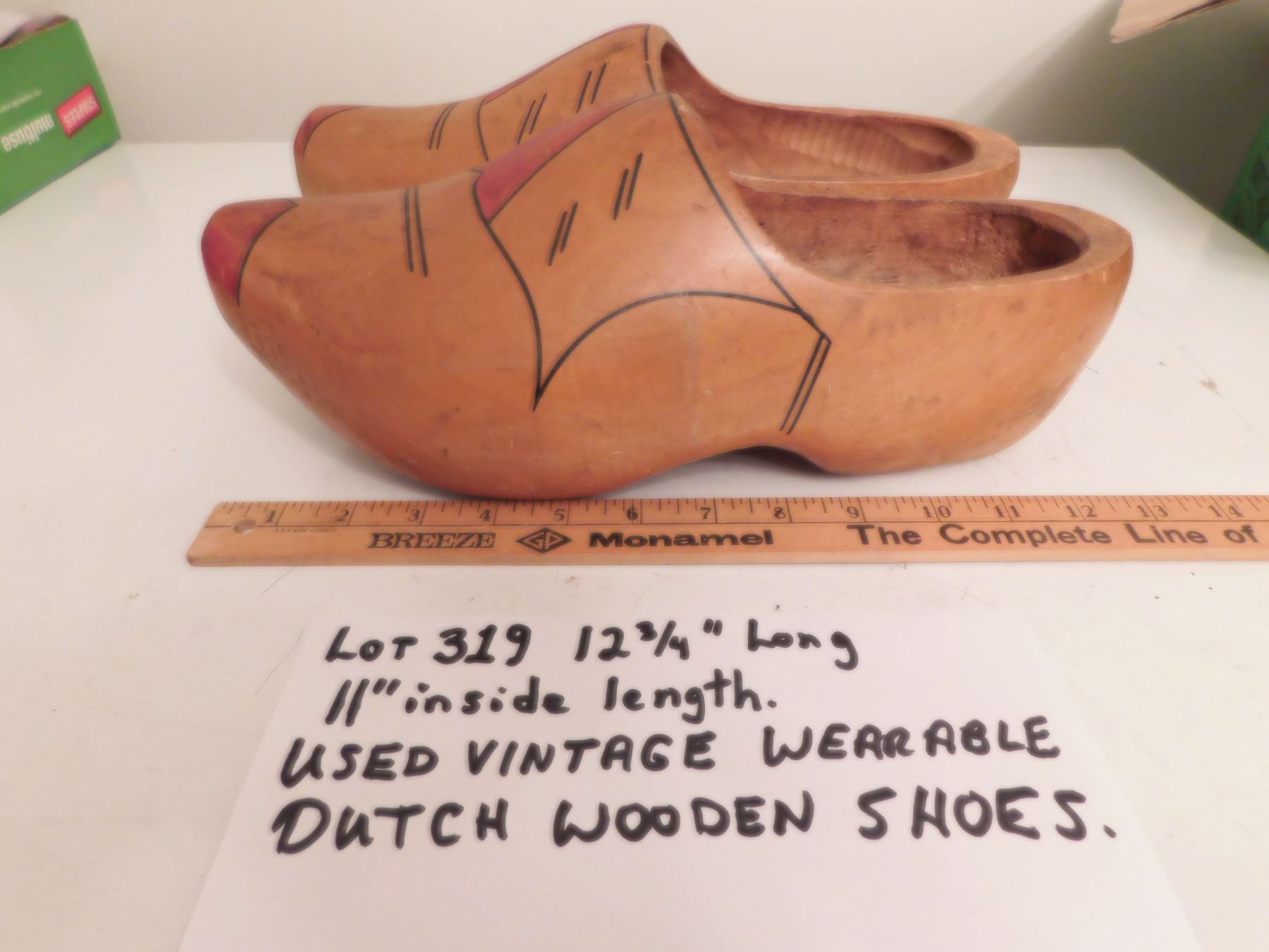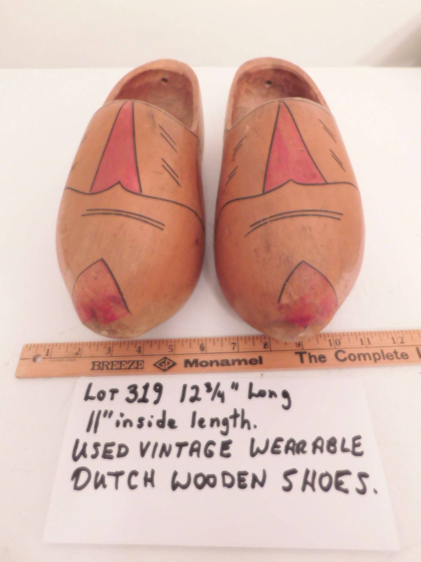 12 ¾” LONG VINTAGE DUTCH WOODEN SHOES (WEARABLE)