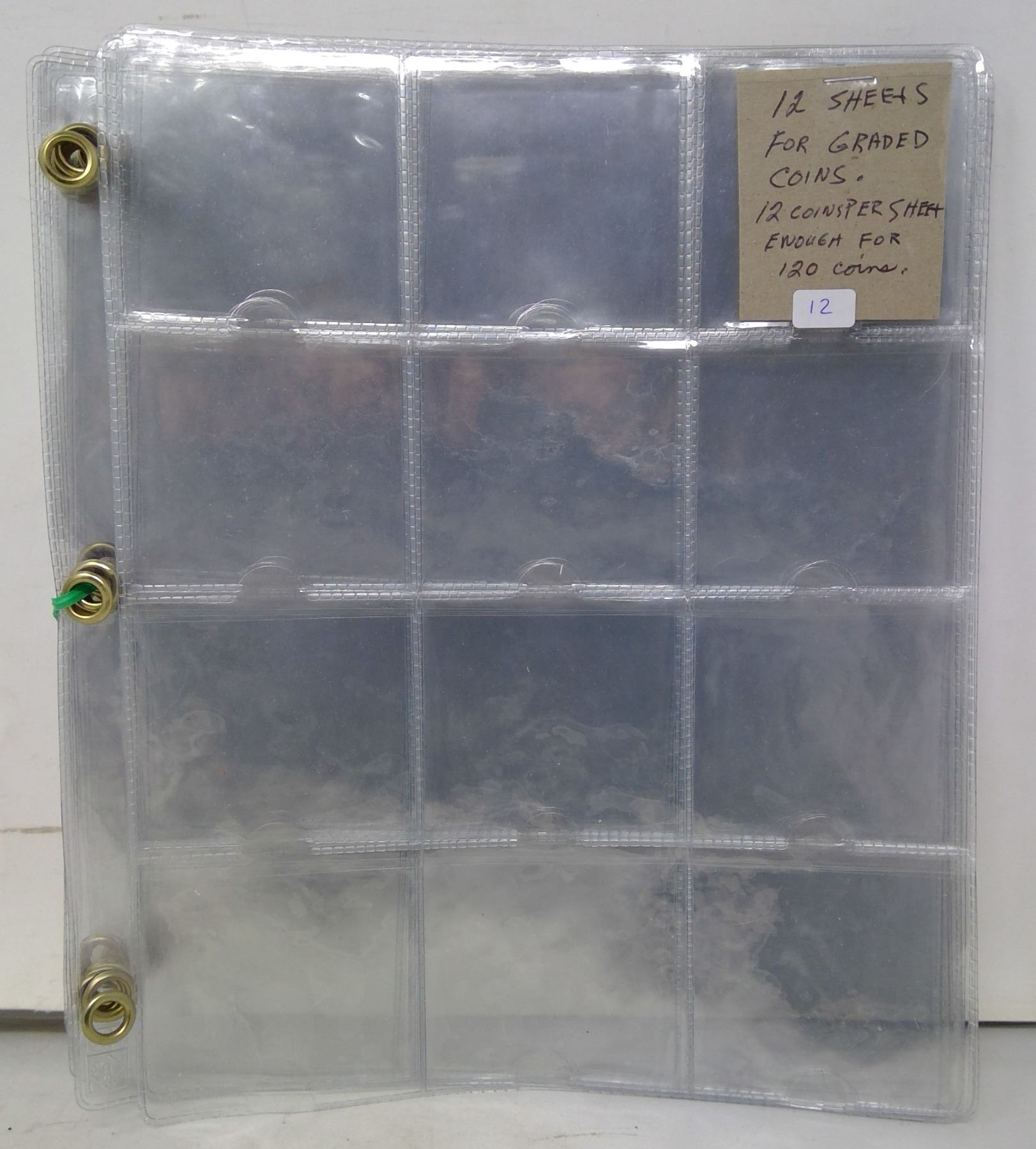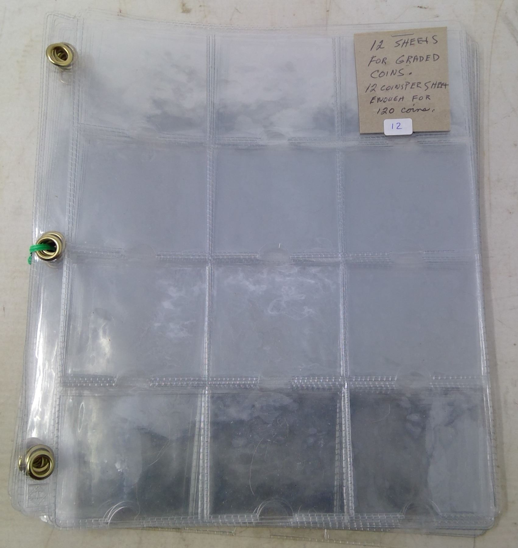 12 Sheets for Graded Coins 12 x 12 - Holds 120 Coins