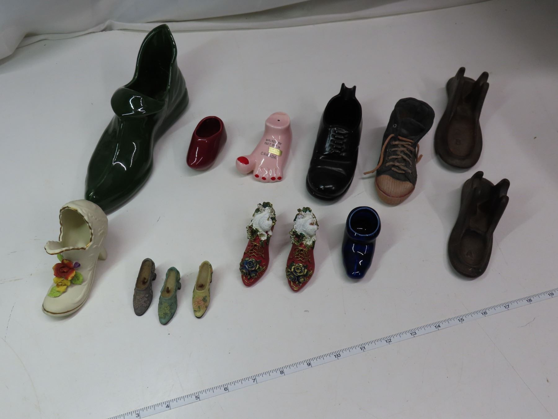 12 Shoe Ornaments + 2 Cast Iron Shoe Cobblers