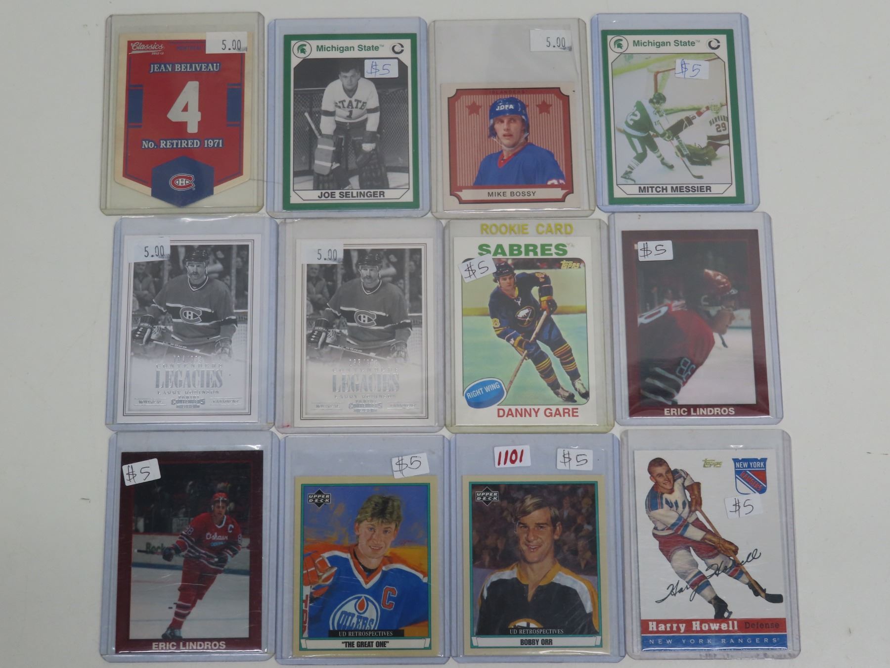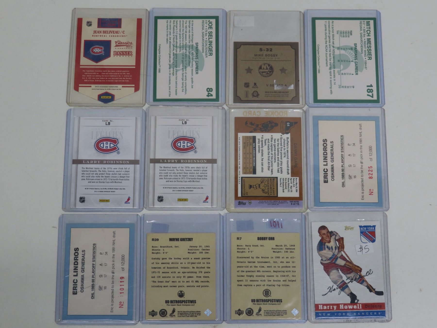 12 assorted Panini, Topps UpperDeck hockey cards - in plastic holders - (years include 1989 - 1991, 2 cards 1983-87, Henry Vernon Howell 1953-54 reprint)