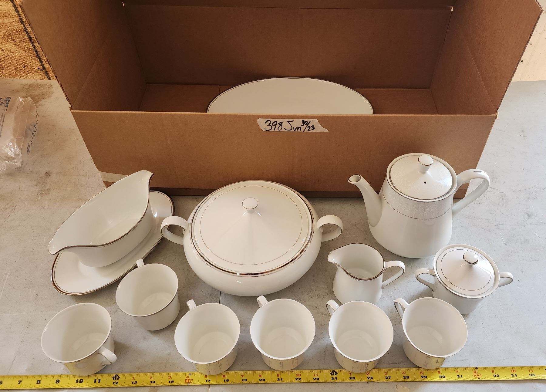 12 pcs of "Crown Empire" fine China dish set - cream and sugar, tea pot, tea cups, casserole dish, gravy bowl, etc.