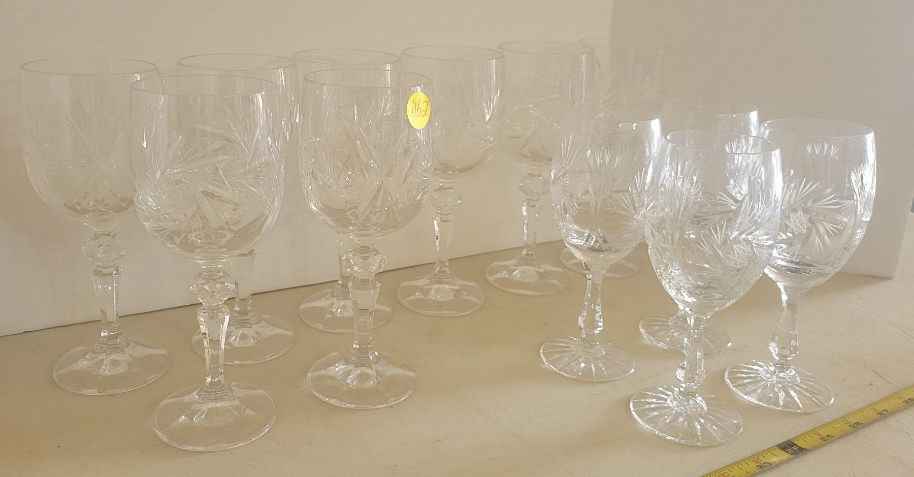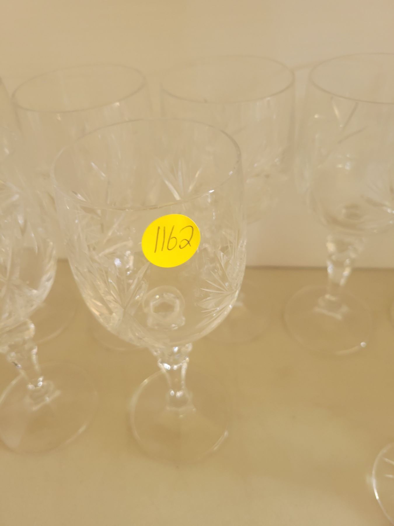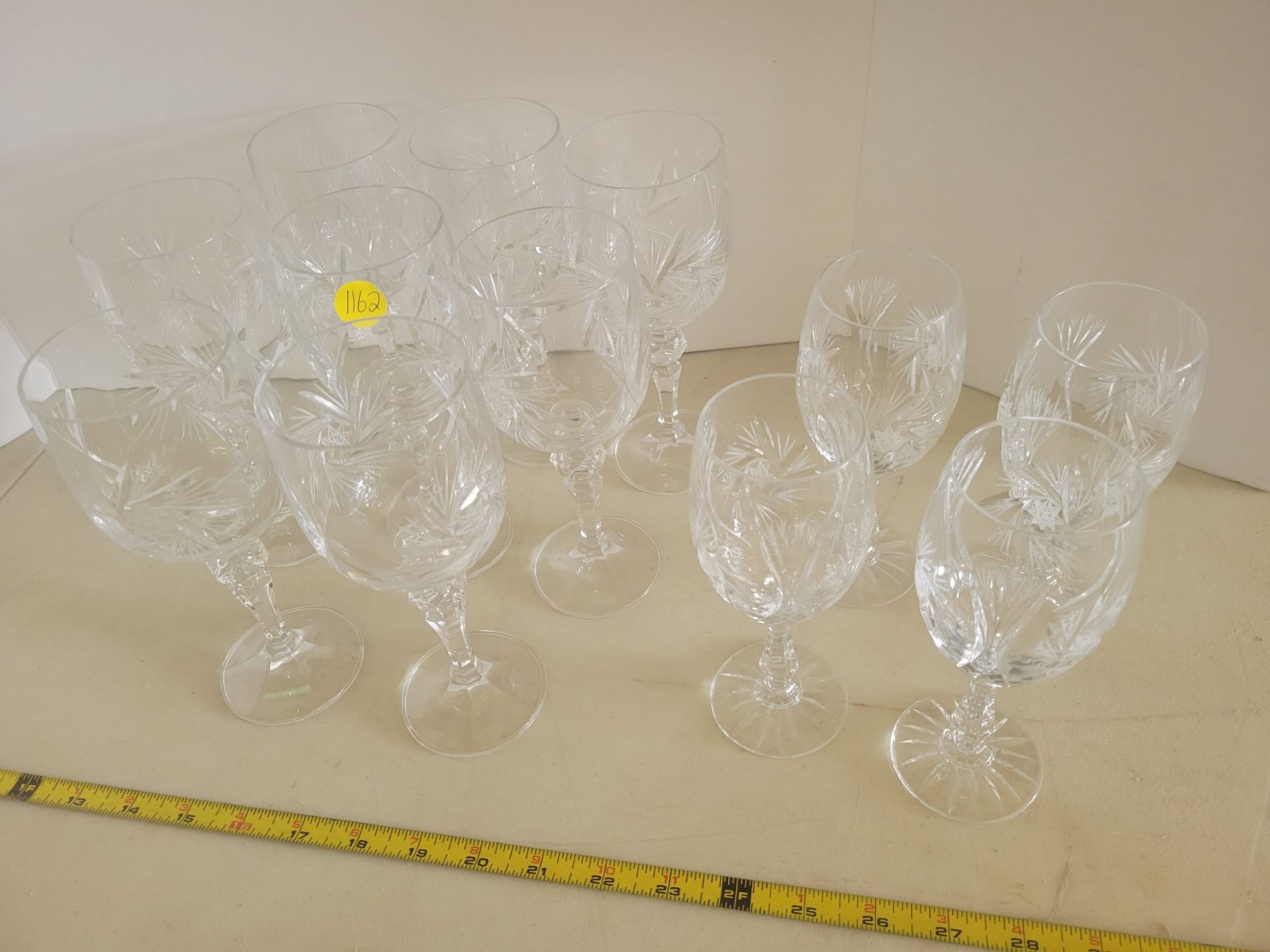 12 pinwheel crystal glasses, 8 wine, 4 liquor