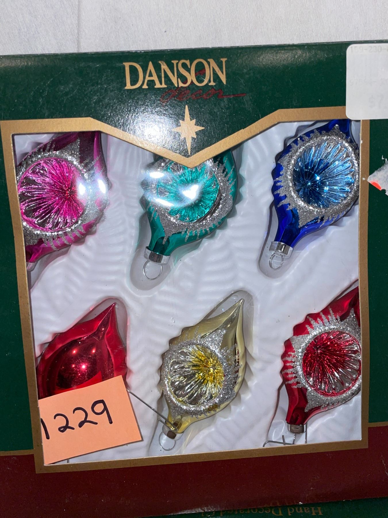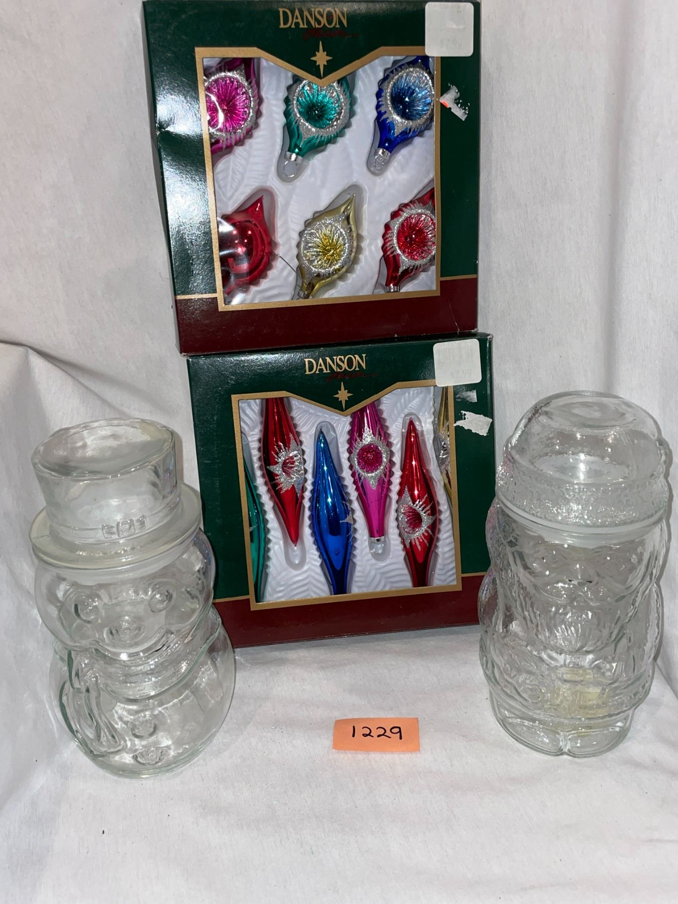12 vintage, glass, Christmas ornaments, and 2 Christmas jars, made in Canada