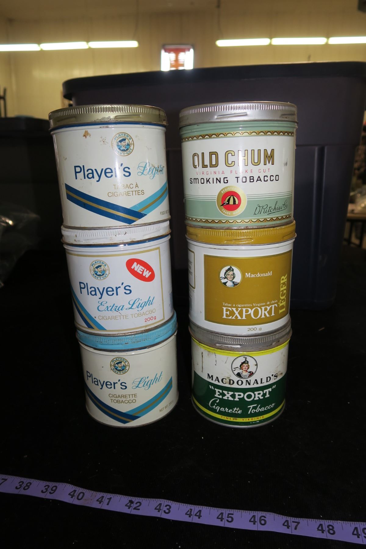 #1233 - 6 Lot of Tobacco Tins ; 3 plyaers, 2 export and 1 old chum