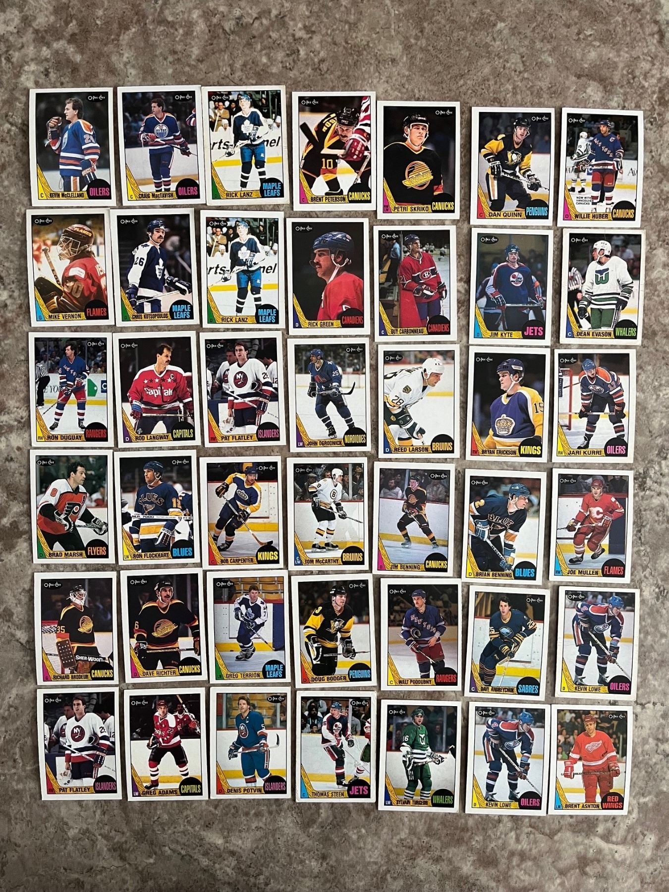 1249- 1987-88 O-Pee-Chee hockey lot of 40+ cards. Leafs. Oilers. Flames. Jets. Canucks.