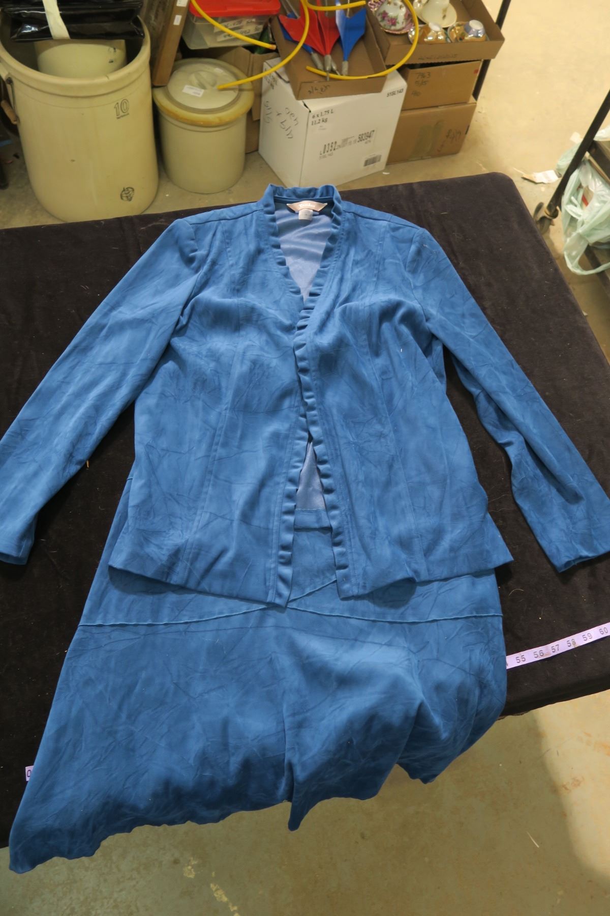 #1256 - 2pc Tan Jay Faux Suede Emerald Green Skirt Sz10 and Faux Suede Dinner Jacket Sz16 - Like New