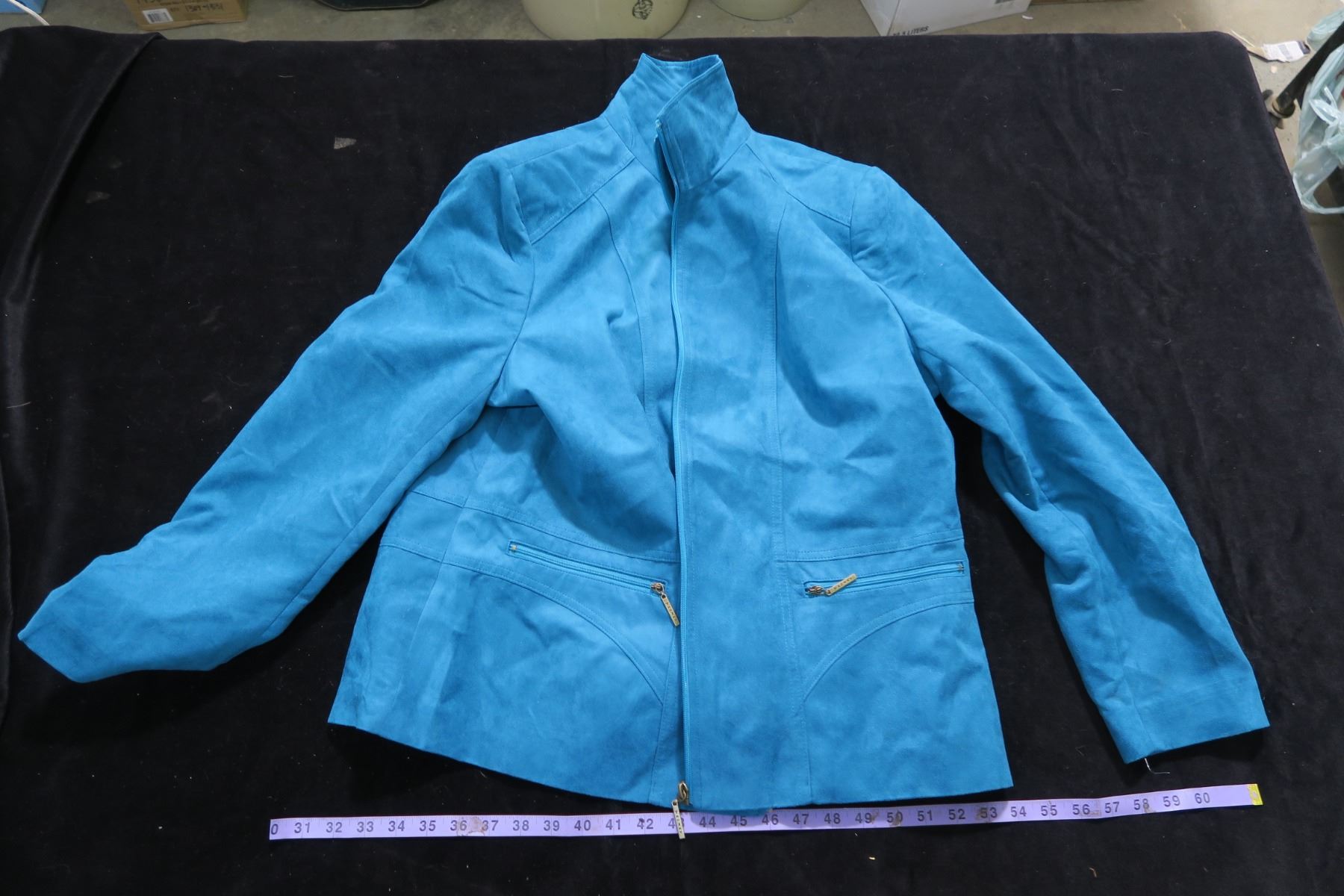 #1258 - Tan Jay Teal Faux Suede Sz18 Dinner Jacket - Like New