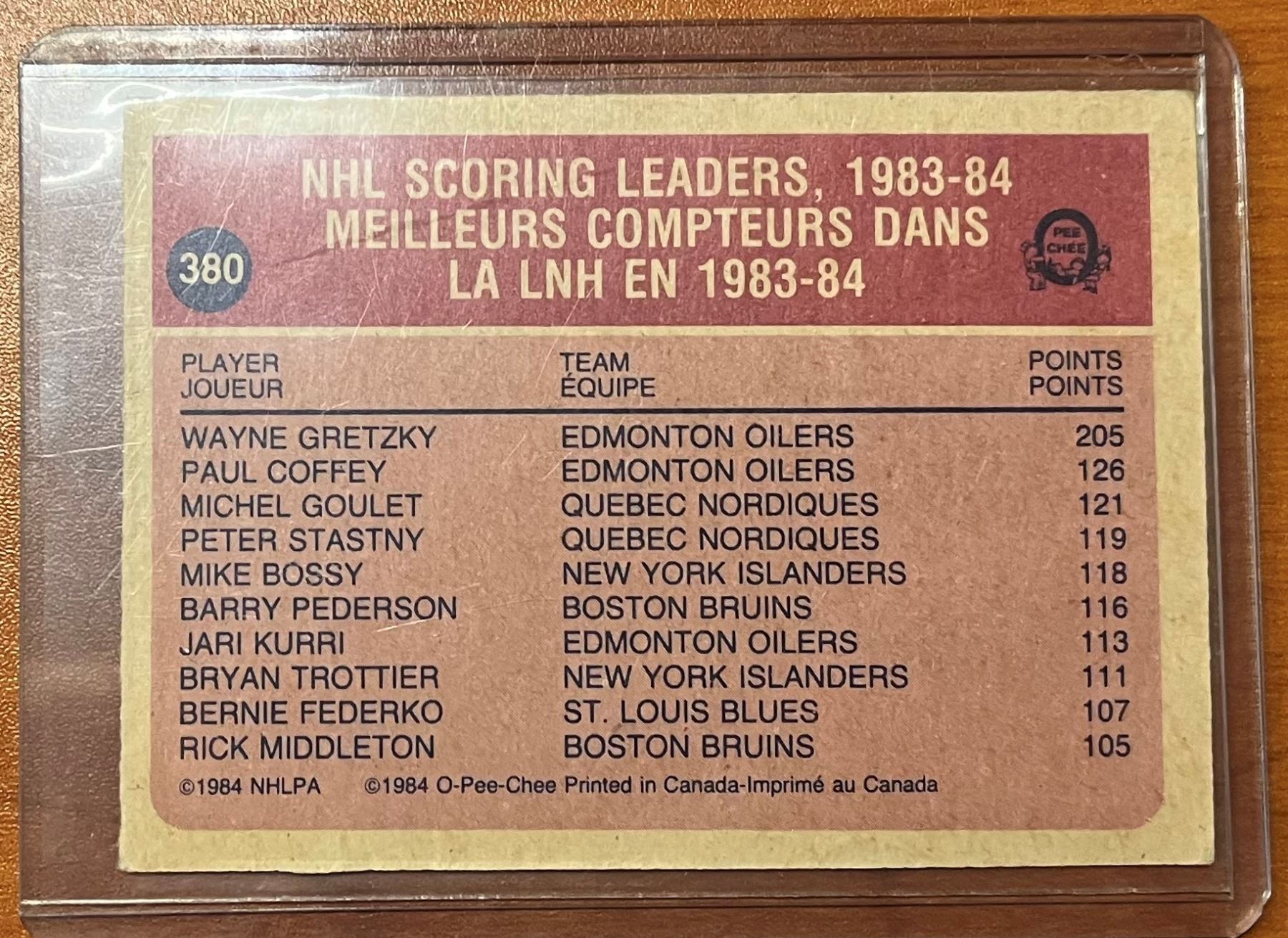 1262- Wayne Gretzky 1983-84 O-Pee-Chee hockey card 380.