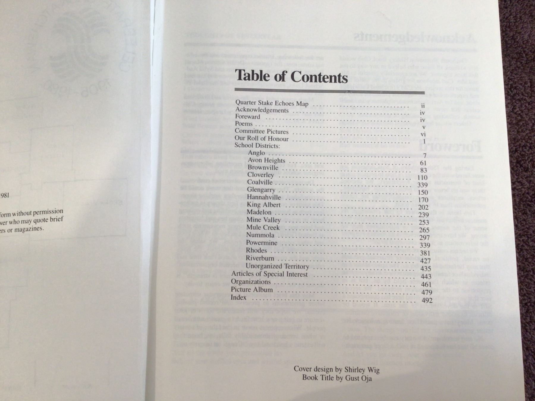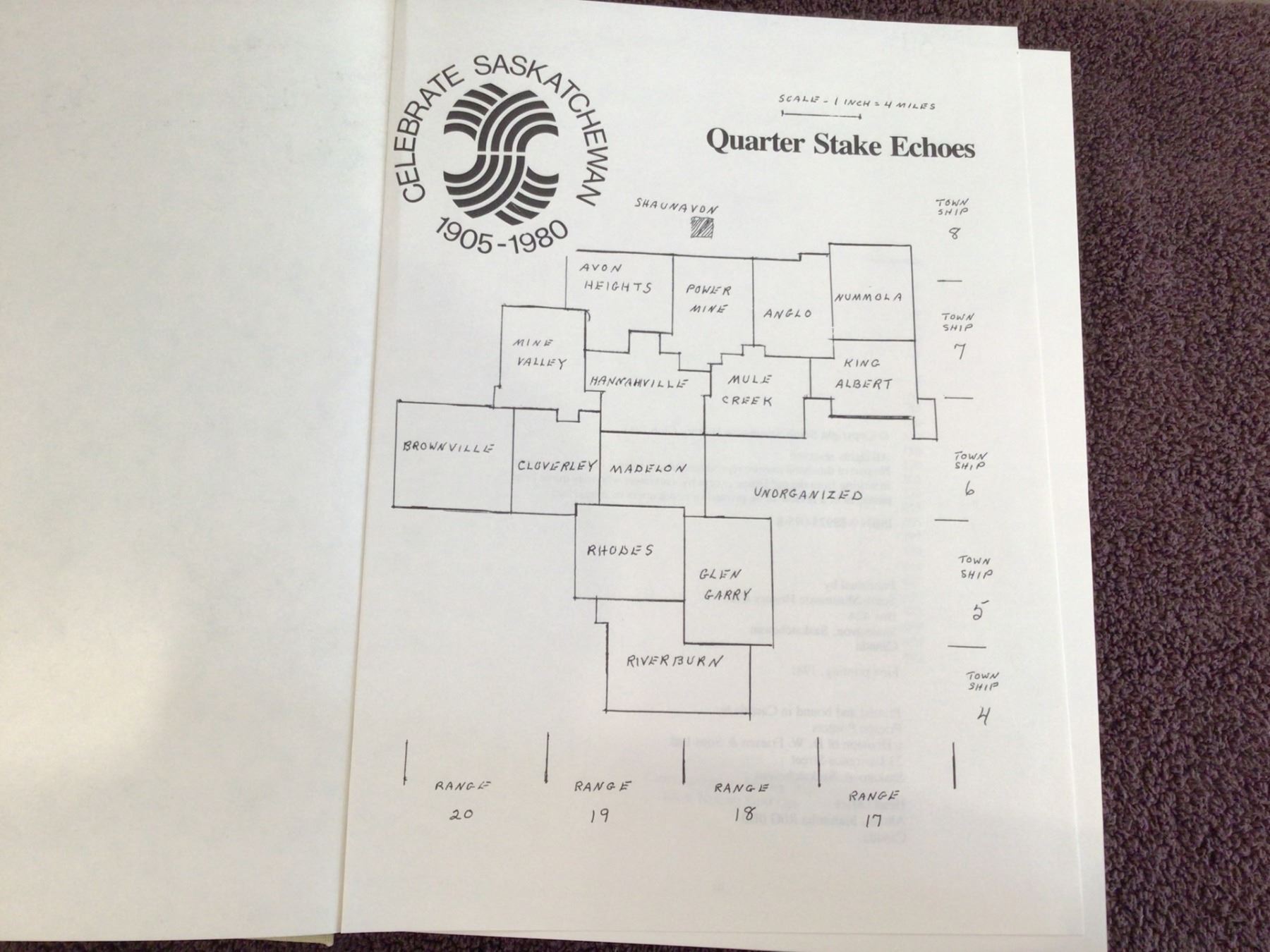 #1270 - Saskatchewan History book - Quaker State Echoes - area south oh Shaunavon. Printed in 1981. 494 pages.